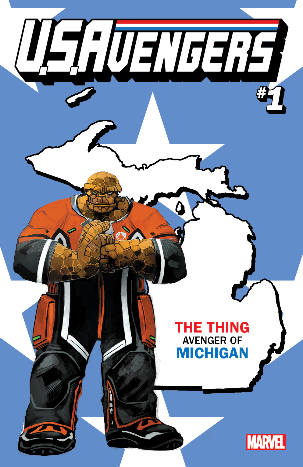 “Marvel’s U.S.AVENGERS State Variants are a chance for our fans and retailers to show their home town patriotism paired with some of the biggest Avengers from the Marvel Universe,” says SVP Sales & Marketing for Marvel, David Gabriel. “We knew that a series with the name U.S.AVENGERS would evoke a sense of honor with all of our fans and we really wanted to go that extra step and offer a variant campaign that would allow our readers to show their hometown pride across this great nation.”