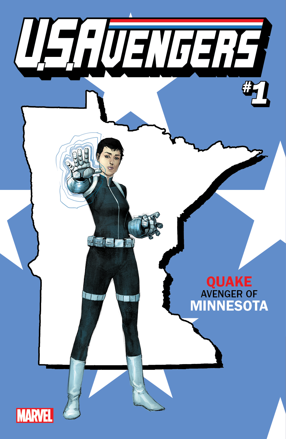 New York, NY—November 18, 2016 — From coast to coast – Alabama to Wyoming – the U.S.AVENGERS are here to unify our nation and proudly defend all its citizens. For the launch of this all-new series, U.S.AVENGERS, Marvel Comics will produce over 50 unique variants assigning one Avenger to each state which has garnered nationwide press attention from ABC News, Hollywood Reporter, Buzzfeed, and more, today, Marvel is excited to debut the entire lineup for these distinctive State Variant covers with exceptional artwork by Rod Reis.