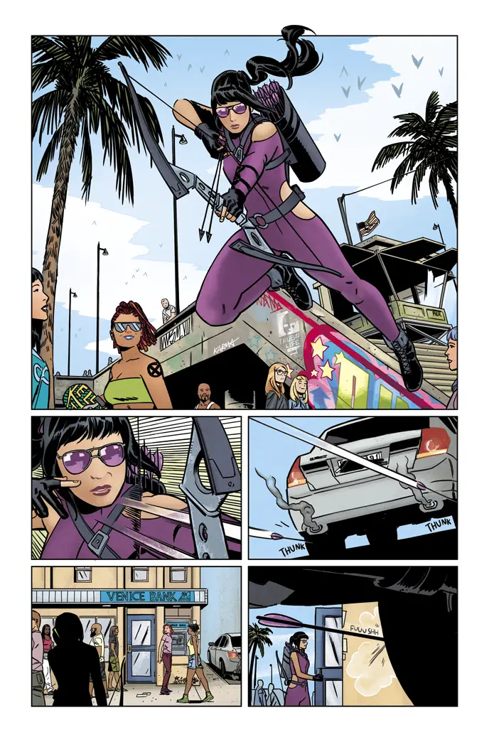 New York, NY—November 11th, 2016 — This December, the City of Angels has a new guardian angel. Load your quivers and nock your arrows, True Believer because there’s a new archer in town when the all-new HAWKEYE #1 comes to comic shops and digital devices everywhere! Kate Bishop is flying solo in a brand new series courtesy of rising comic stars Kelly Thompson (A-Force) and Leonardo Romero (Doctor Strange). Kate’s back on the west coast with nothing but her bow, some arrows and her P.I. badge in tow. There’s crime to fight and she’s the best archer to handle it! It’s Kate Bishop like you’ve never seen her before – in a can’t-miss new series that really hits the mark! Be there when HAWKEYE #1 comes to comic shops and digital devices everywhere on December 14th!
