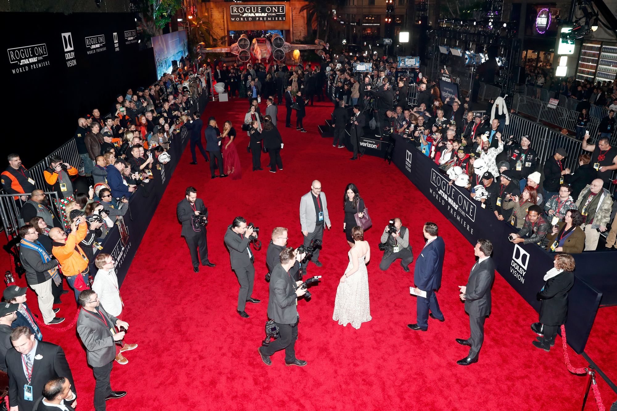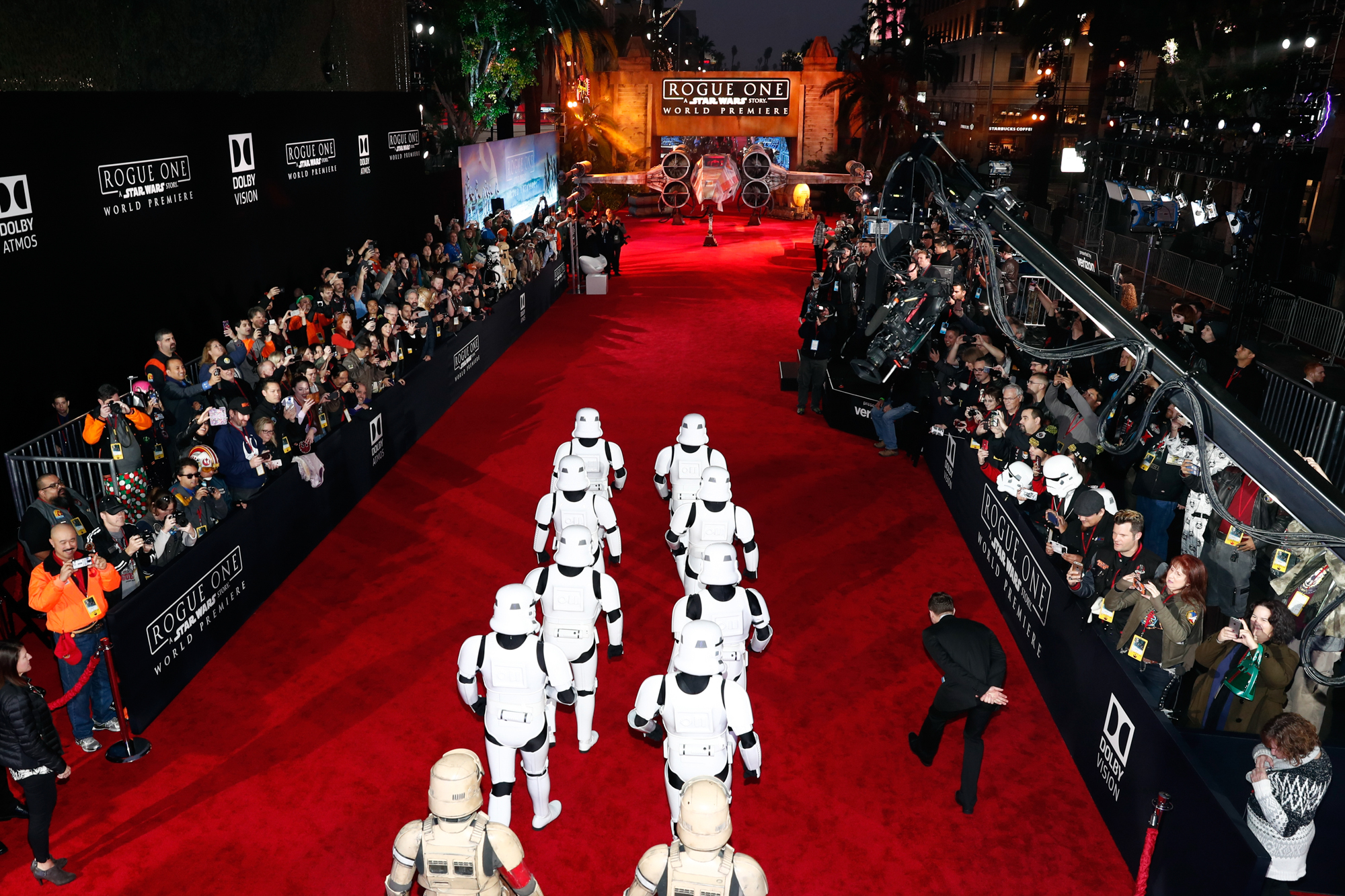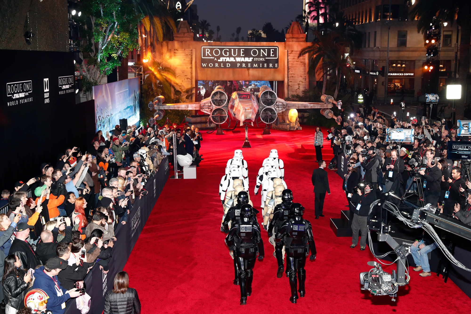 HOLLYWOOD, CA – DECEMBER 10: A view of the atmosphere at The World Premiere of Lucasfilm’s highly anticipated, first-ever, standalone Star Wars adventure, “Rogue One: A Star Wars Story” at the Pantages Theatre on December 10, 2016 in Hollywood, California. (Photo by Rich Polk/Getty Images for Disney)