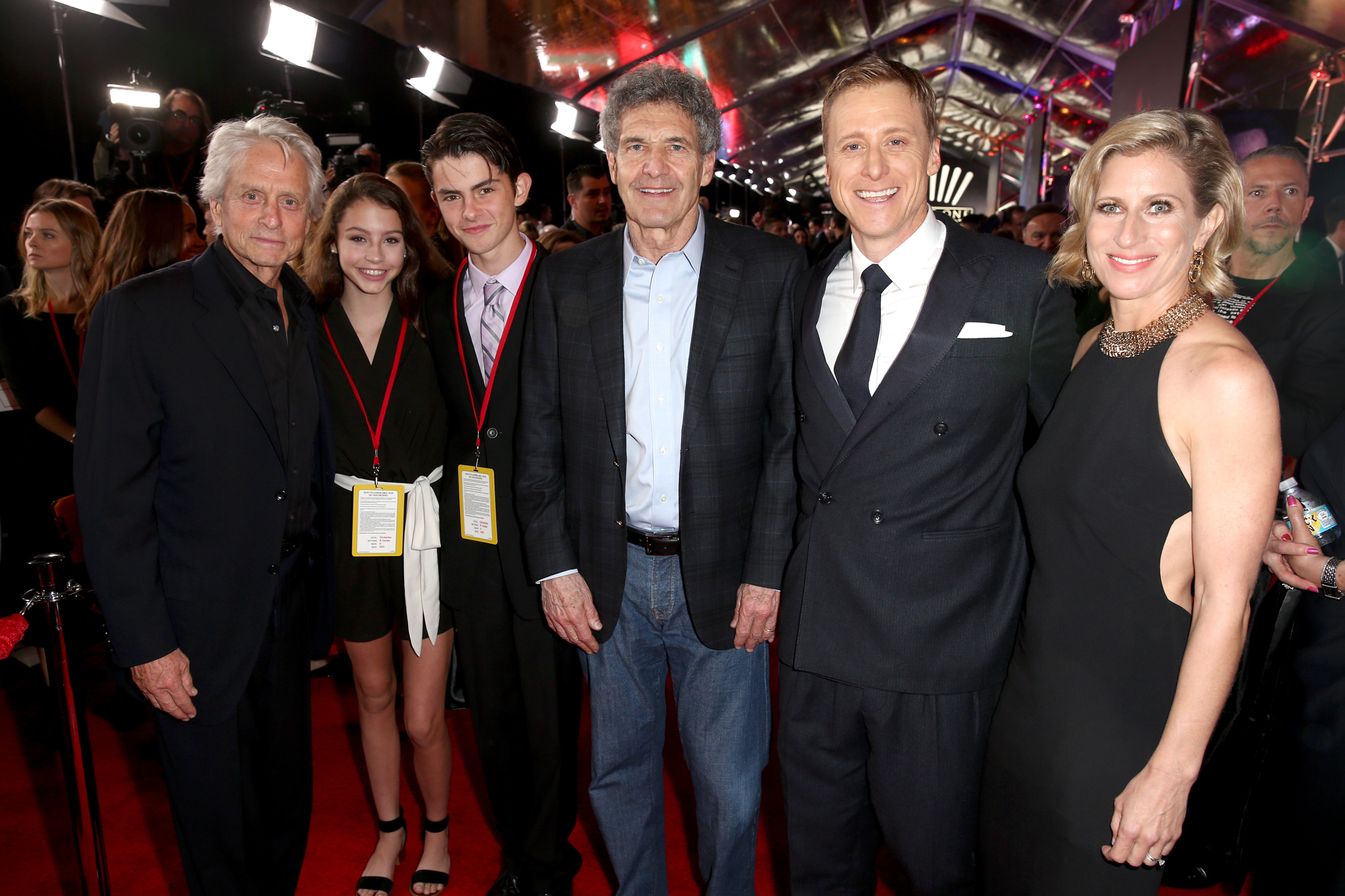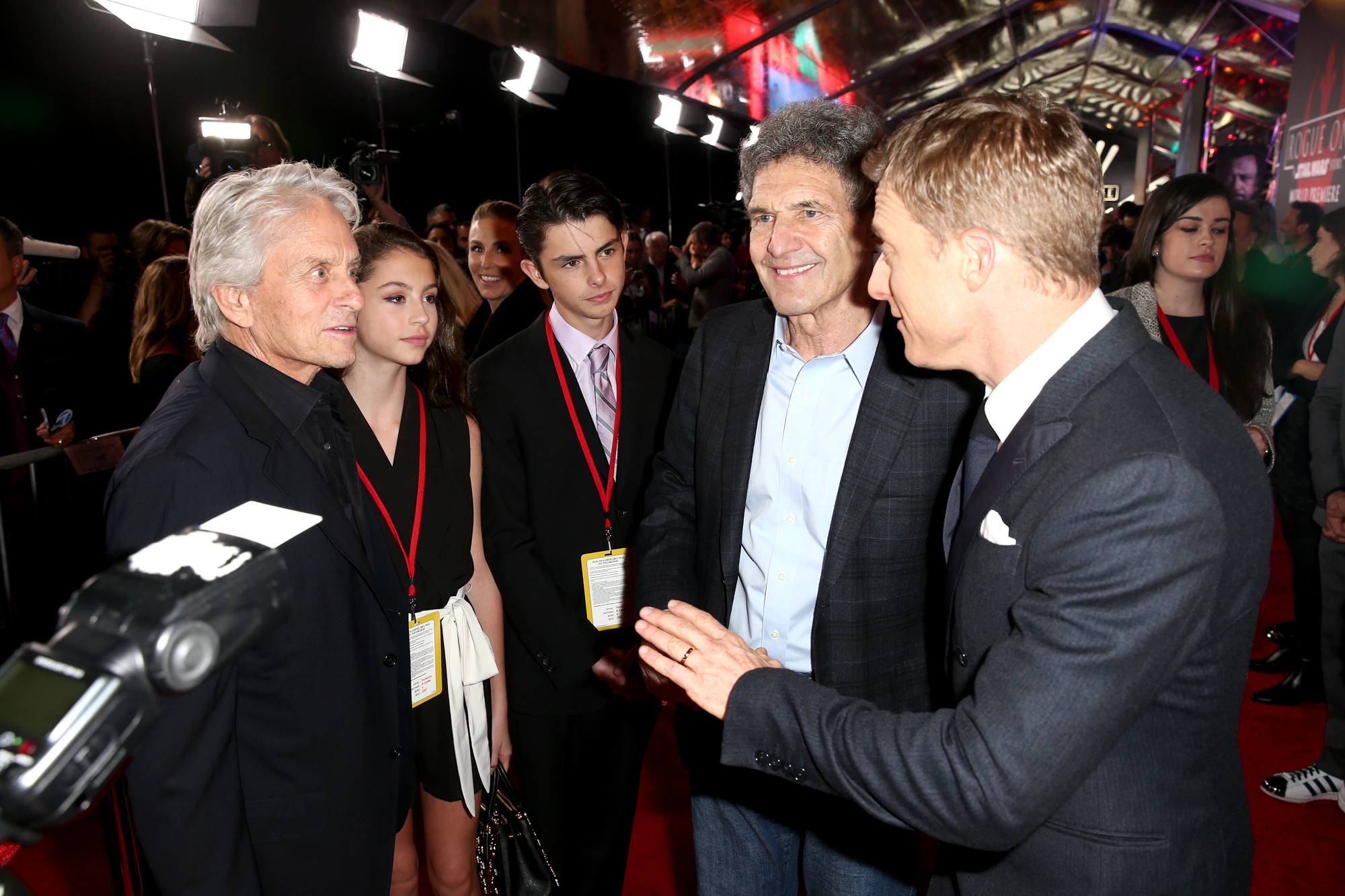 HOLLYWOOD, CA – DECEMBER 10: (L-R) Actor Michael Douglas and guests, The Walt Disney Studios Chairman Alan Horn, actor Alan Tudyk, and choreographer Charissa Barton attend The World Premiere of Lucasfilm’s highly anticipated, first-ever, standalone Star Wars adventure, “Rogue One: A Star Wars Story” at the Pantages Theatre on December 10, 2016 in Hollywood, California. (Photo by Joe Scarnici/Getty Images for Disney) *** Local Caption *** Michael Douglas; Alan Horn; Alan Tudyk; Charissa Barton