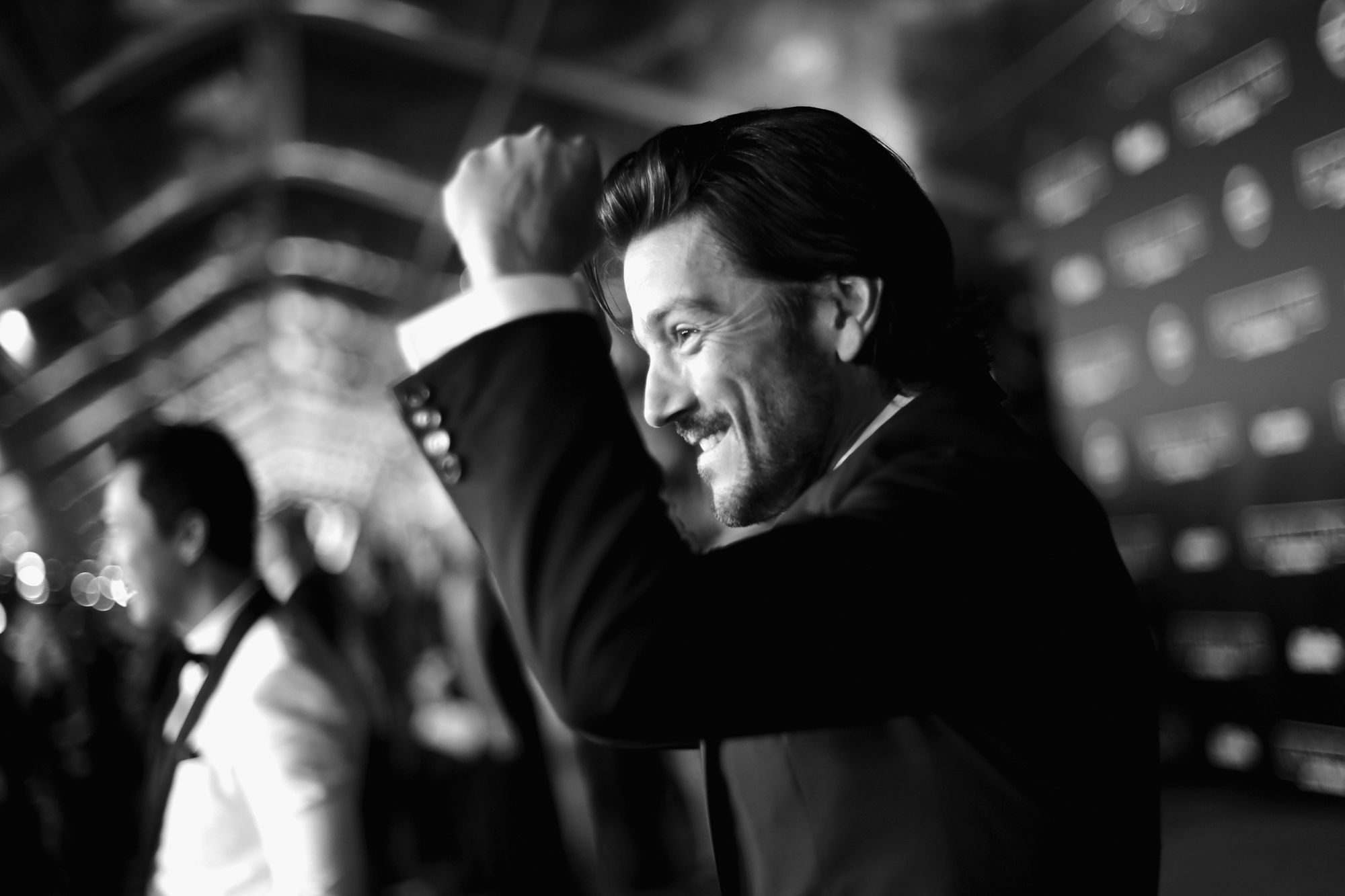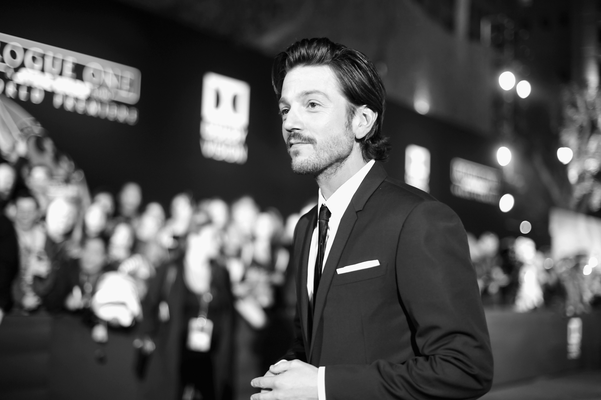 HOLLYWOOD, CA – DECEMBER 10: (EDITORS NOTE: Image has been shot in black and white. Color version not available.) Actor Diego Luna attends The World Premiere of Lucasfilm’s highly anticipated, first-ever, standalone Star Wars adventure, “Rogue One: A Star Wars Story” at the Pantages Theatre on December 10, 2016 in Hollywood, California. (Photo by Charley Gallay/Getty Images for Disney) *** Local Caption *** Diego Luna