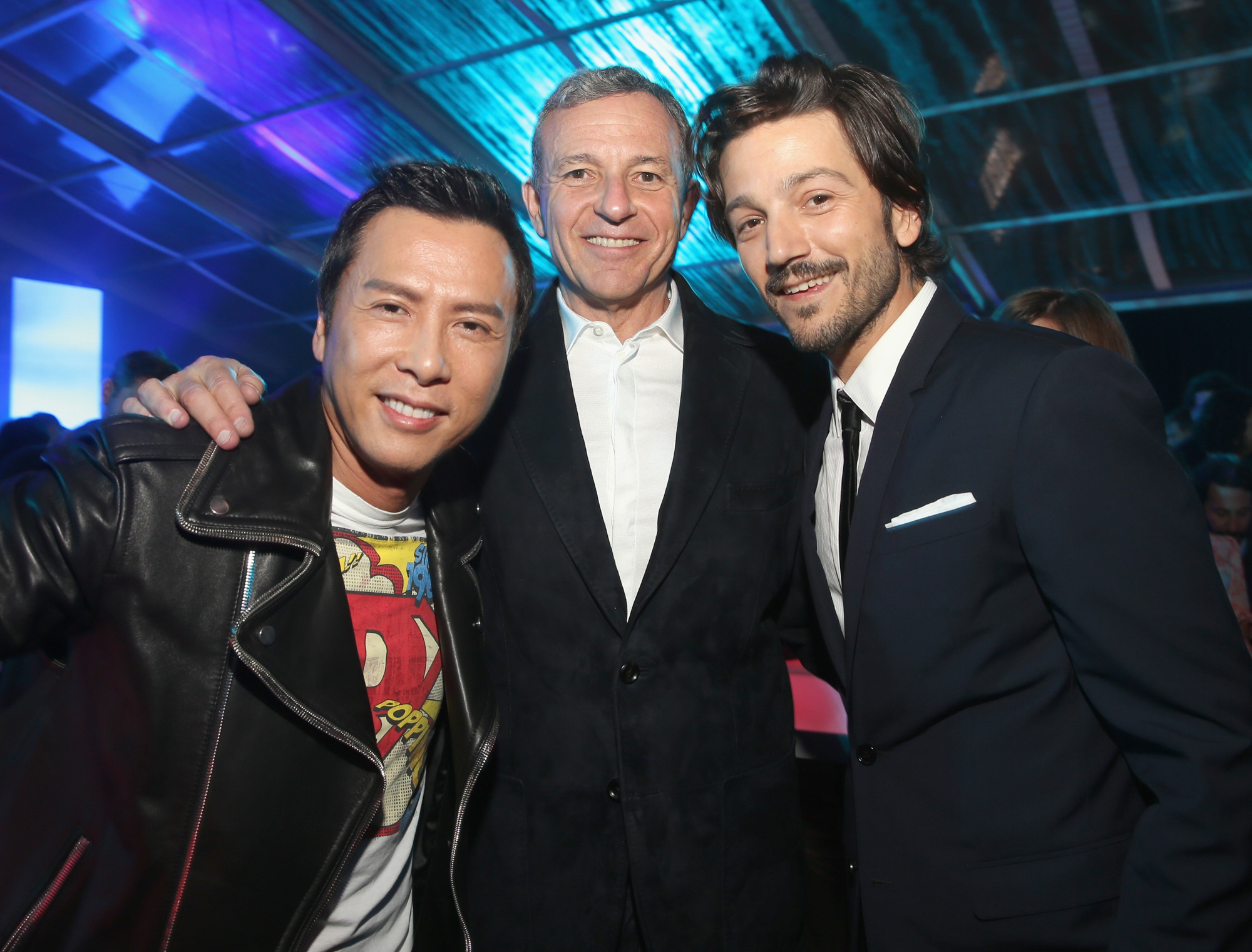 HOLLYWOOD, CA – DECEMBER 10: (L-R) Actor Donnie Yen, The Walt Disney Company Chairman and CEO Bob Iger and actor Diego Luna attend The World Premiere of Lucasfilm’s highly anticipated, first-ever, standalone Star Wars adventure, “Rogue One: A Star Wars Story” at the Pantages Theatre on December 10, 2016 in Hollywood, California. (Photo by Jesse Grant/Getty Images for Disney) *** Local Caption *** Donnie Yen; Bob Iger; Diego Luna