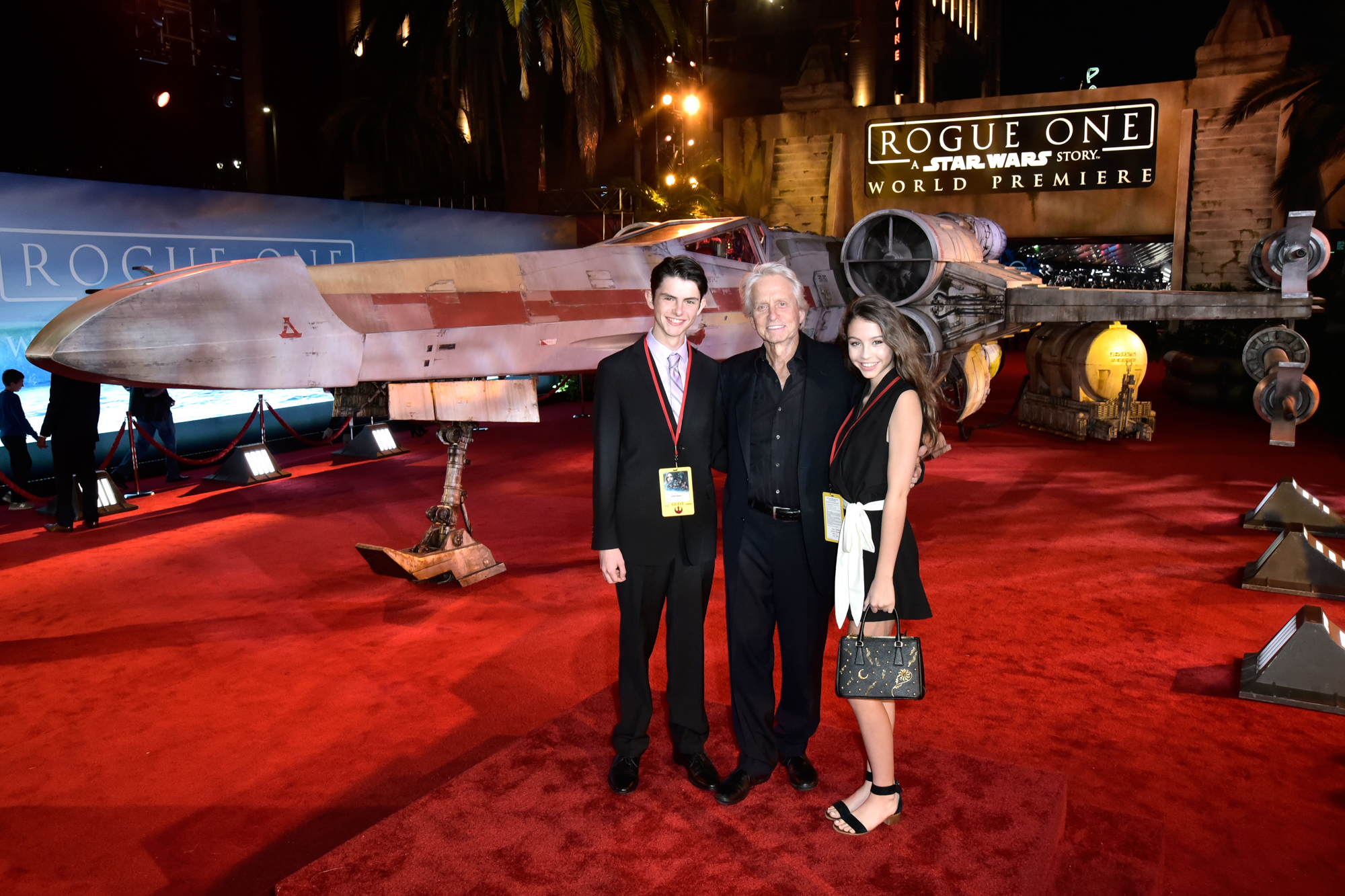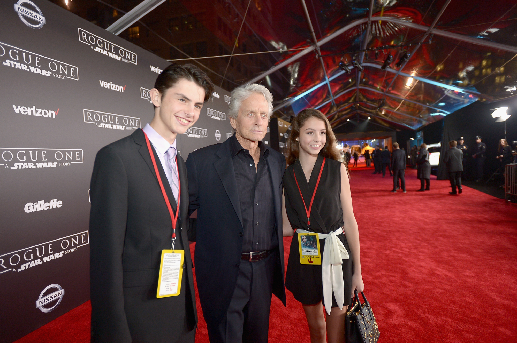 HOLLYWOOD, CA – DECEMBER 10: (L-R) Dylan Michael Douglas, Michael Douglas and Carys Zeta-Douglas attend The World Premiere of Lucasfilm’s highly anticipated, first-ever, standalone Star Wars adventure, “Rogue One: A Star Wars Story” at the Pantages Theatre on December 10, 2016 in Hollywood, California. (Photo by Charley Gallay/Getty Images for Disney) *** Local Caption *** Michael Douglas; Dylan Michael Douglas; Carys Zeta-Douglas