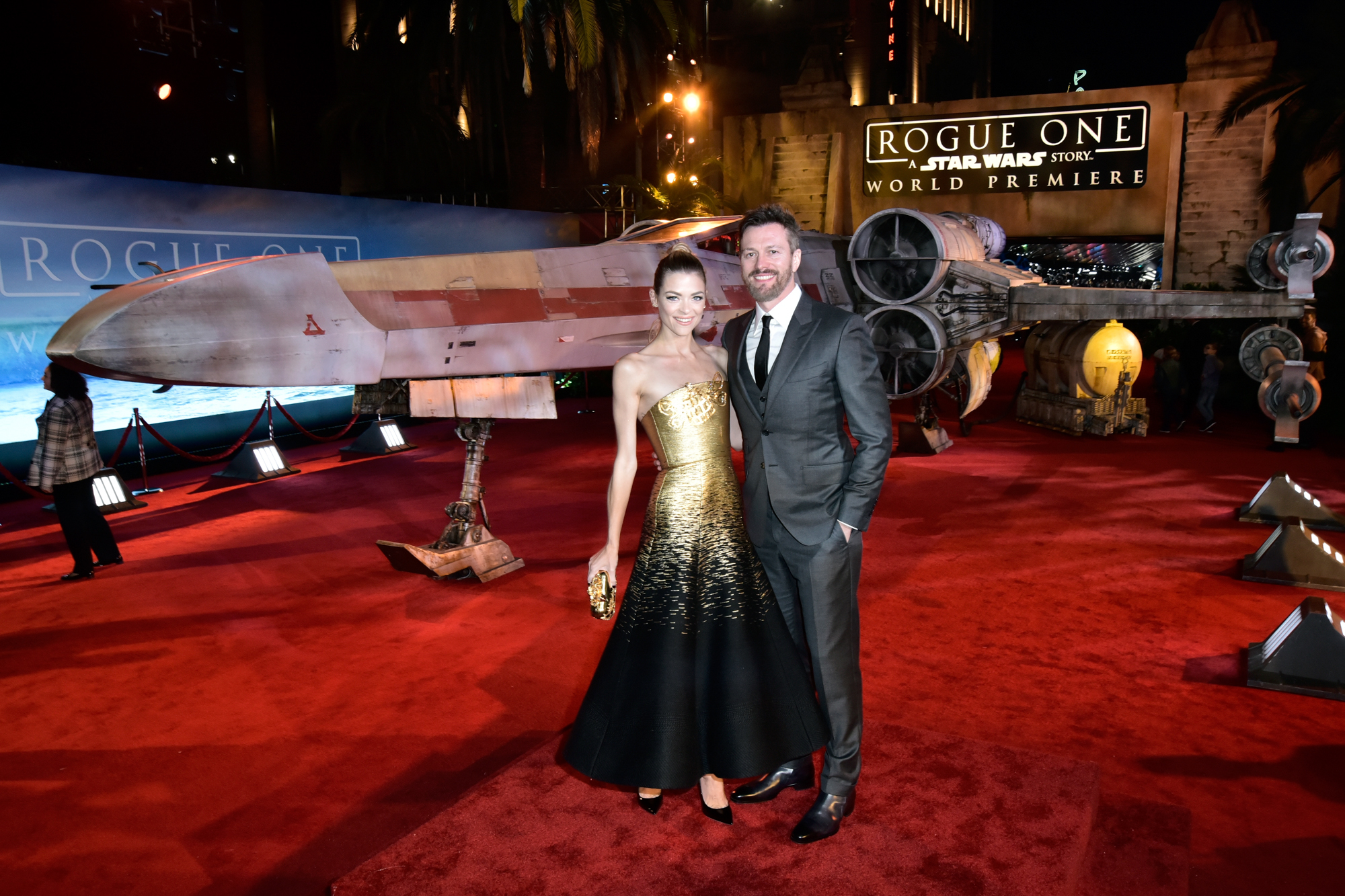 HOLLYWOOD, CA – DECEMBER 10: Screenwriter Russ Lamoureux (L) and actress Constance Zimmer attend The World Premiere of Lucasfilm’s highly anticipated, first-ever, standalone Star Wars adventure, “Rogue One: A Star Wars Story” at the Pantages Theatre on December 10, 2016 in Hollywood, California. (Photo by Marc Flores/Getty Images for Disney) *** Local Caption *** Russ Lamoureux; Constance Zimmer