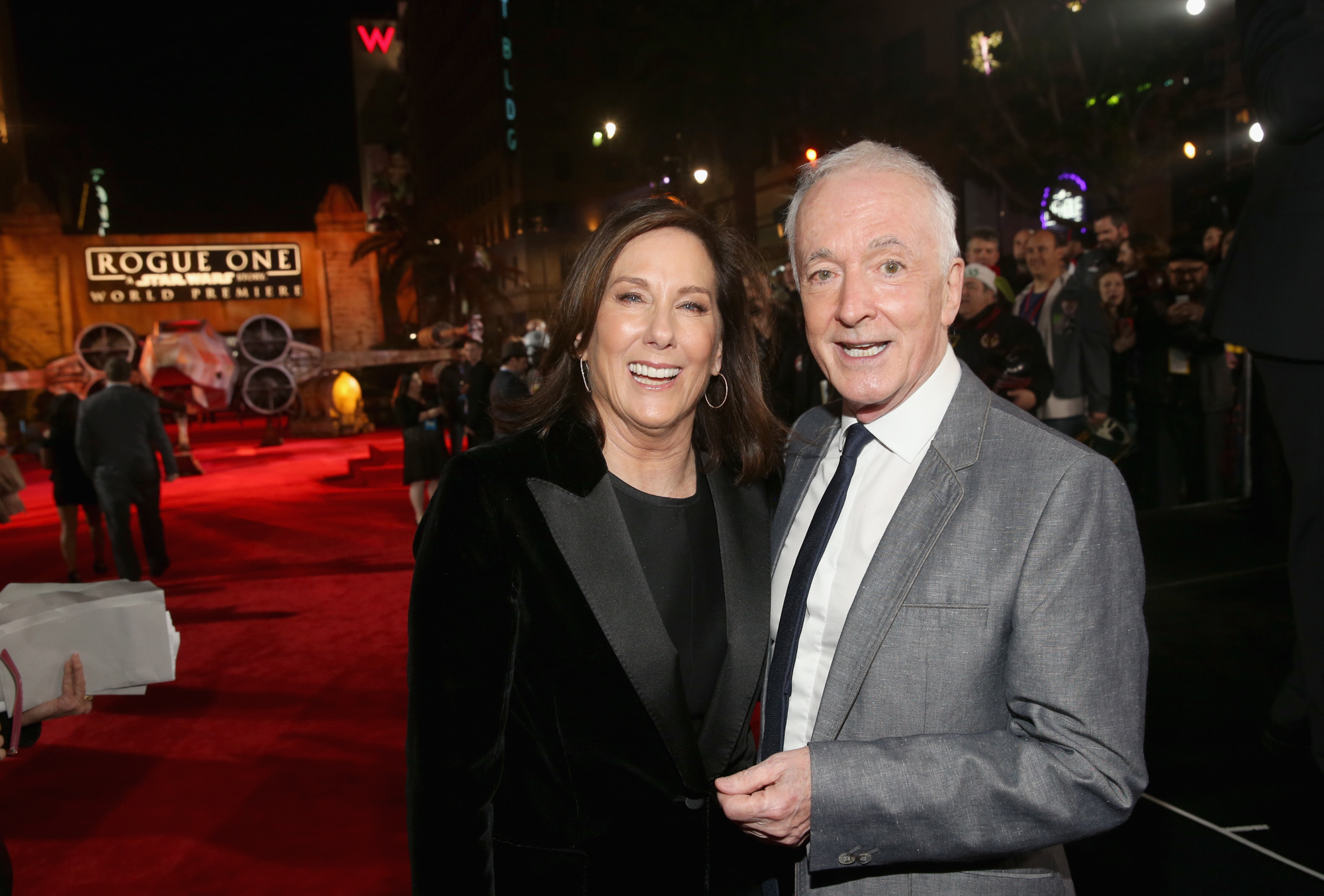 HOLLYWOOD, CA – DECEMBER 10: Producer Kathleen Kennedy (L) and actor Anthony Daniels attend The World Premiere of Lucasfilm’s highly anticipated, first-ever, standalone Star Wars adventure, “Rogue One: A Star Wars Story” at the Pantages Theatre on December 10, 2016 in Hollywood, California. (Photo by Jesse Grant/Getty Images for Disney) *** Local Caption *** Kathleen Kennedy; Anthony Daniels