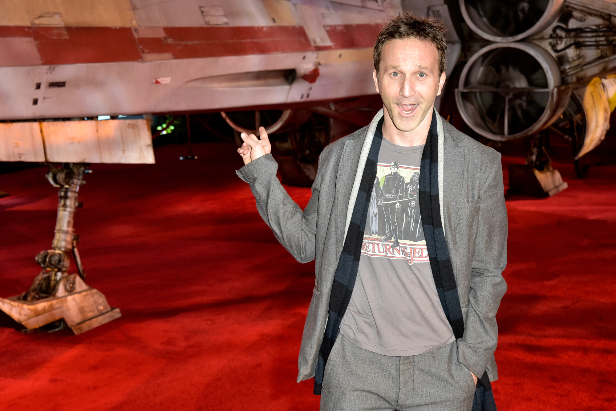 HOLLYWOOD, CA – DECEMBER 10: TV personality Chris Hardwick (L) poses with a fan at The World Premiere of Lucasfilm’s highly anticipated, first-ever, standalone Star Wars adventure, “Rogue One: A Star Wars Story” at the Pantages Theatre on December 10, 2016 in Hollywood, California. (Photo by Jesse Grant/Getty Images for Disney) *** Local Caption *** Chris Hardwick