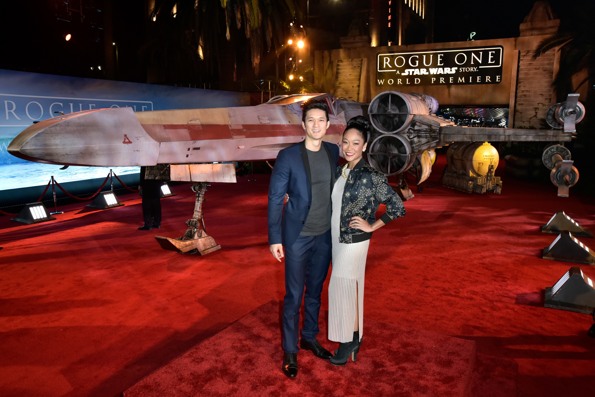 HOLLYWOOD, CA – DECEMBER 10: Actors Harry Shum Jr. (L) and Shelby Rabara attends The World Premiere of Lucasfilm’s highly anticipated, first-ever, standalone Star Wars adventure, “Rogue One: A Star Wars Story” at the Pantages Theatre on December 10, 2016 in Hollywood, California. (Photo by Marc Flores/Getty Images for Disney) *** Local Caption *** Harry Shum Jr; Shelby Rabara