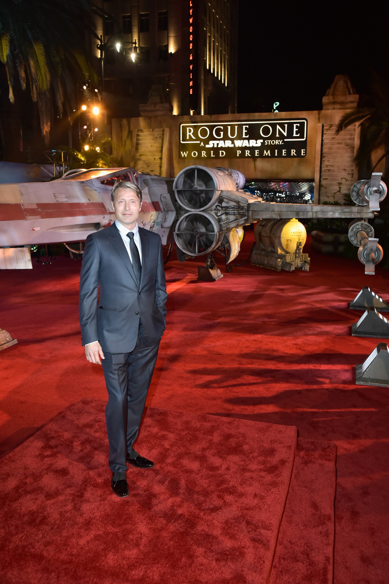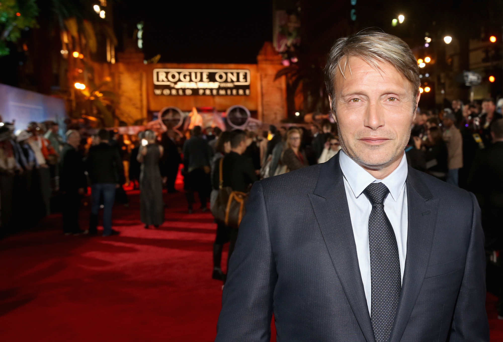 HOLLYWOOD, CA – DECEMBER 10: Actor Mads Mikkelsen attends The World Premiere of Lucasfilm’s highly anticipated, first-ever, standalone Star Wars adventure, “Rogue One: A Star Wars Story” at the Pantages Theatre on December 10, 2016 in Hollywood, California. (Photo by Marc Flores/Getty Images for Disney) *** Local Caption *** Mads Mikkelsen