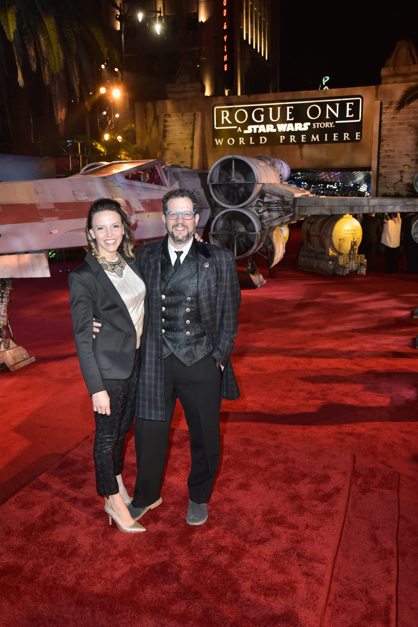 HOLLYWOOD, CA – DECEMBER 10: Andrea Datzman (L) and composer Michael Giacchino attend The World Premiere of Lucasfilm’s highly anticipated, first-ever, standalone Star Wars adventure, “Rogue One: A Star Wars Story” at the Pantages Theatre on December 10, 2016 in Hollywood, California. (Photo by Marc Flores/Getty Images for Disney) *** Local Caption *** Andrea Datzman; Michael Giacchino