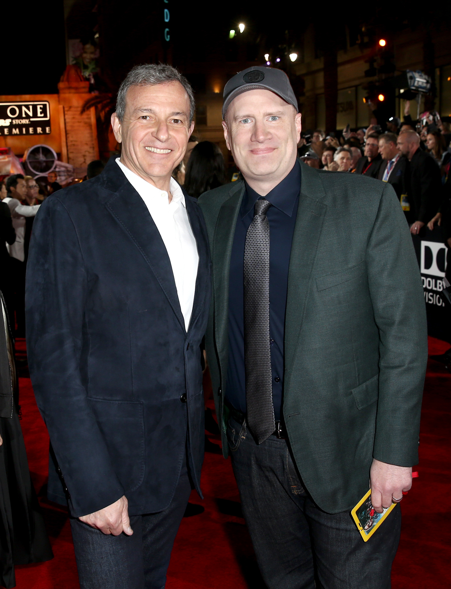 HOLLYWOOD, CA – DECEMBER 10: The Walt Disney Company Chairman/CEO Bob Iger (L) and Marvel Studios President Kevin Feige attend The World Premiere of Lucasfilm’s highly anticipated, first-ever, standalone Star Wars adventure, “Rogue One: A Star Wars Story” at the Pantages Theatre on December 10, 2016 in Hollywood, California. (Photo by Joe Scarnici/Getty Images for Disney) *** Local Caption *** Bob Iger; Kevin Feige