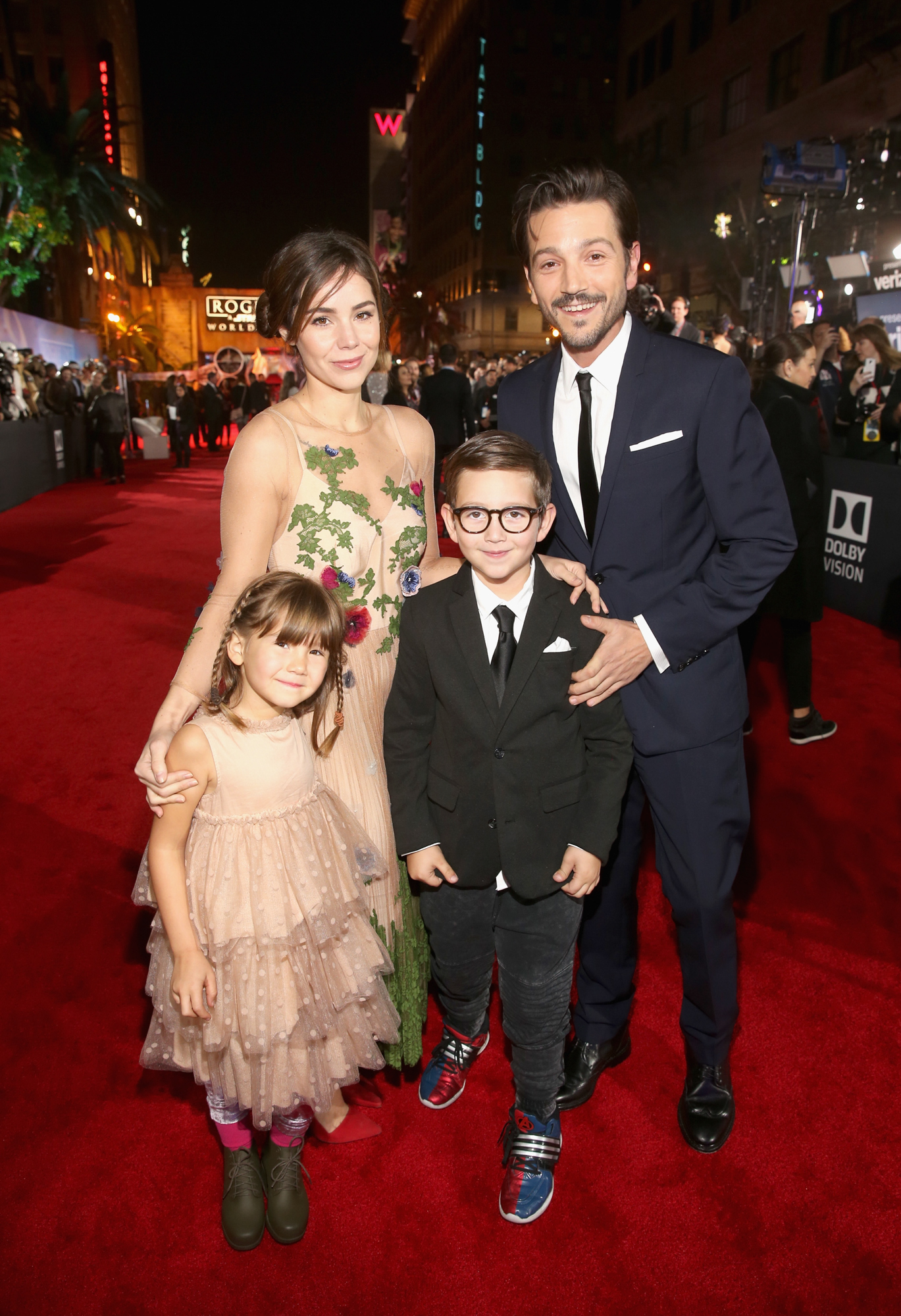 HOLLYWOOD, CA – DECEMBER 10: Actor Diego Luna (C) and family attend The World Premiere of Lucasfilm’s highly anticipated, first-ever, standalone Star Wars adventure, “Rogue One: A Star Wars Story” at the Pantages Theatre on December 10, 2016 in Hollywood, California. (Photo by Marc Flores/Getty Images for Disney) *** Local Caption *** Diego Luna