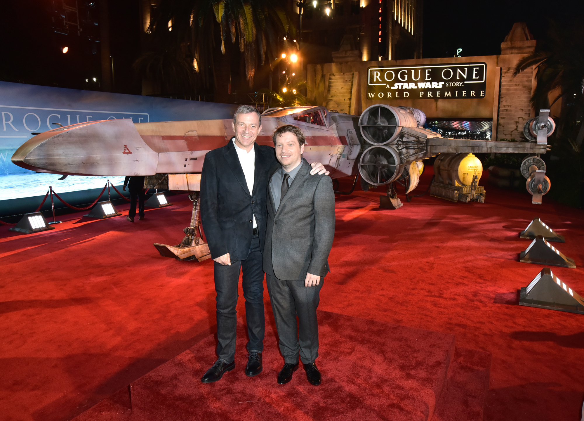 HOLLYWOOD, CA – DECEMBER 10: The Walt Disney Company Chairman and CEO Bob Iger (L) and Director Gareth Edwards attend The World Premiere of Lucasfilm’s highly anticipated, first-ever, standalone Star Wars adventure, “Rogue One: A Star Wars Story” at the Pantages Theatre on December 10, 2016 in Hollywood, California. (Photo by Marc Flores/Getty Images for Disney) *** Local Caption *** Bob Iger; Gareth Edwards