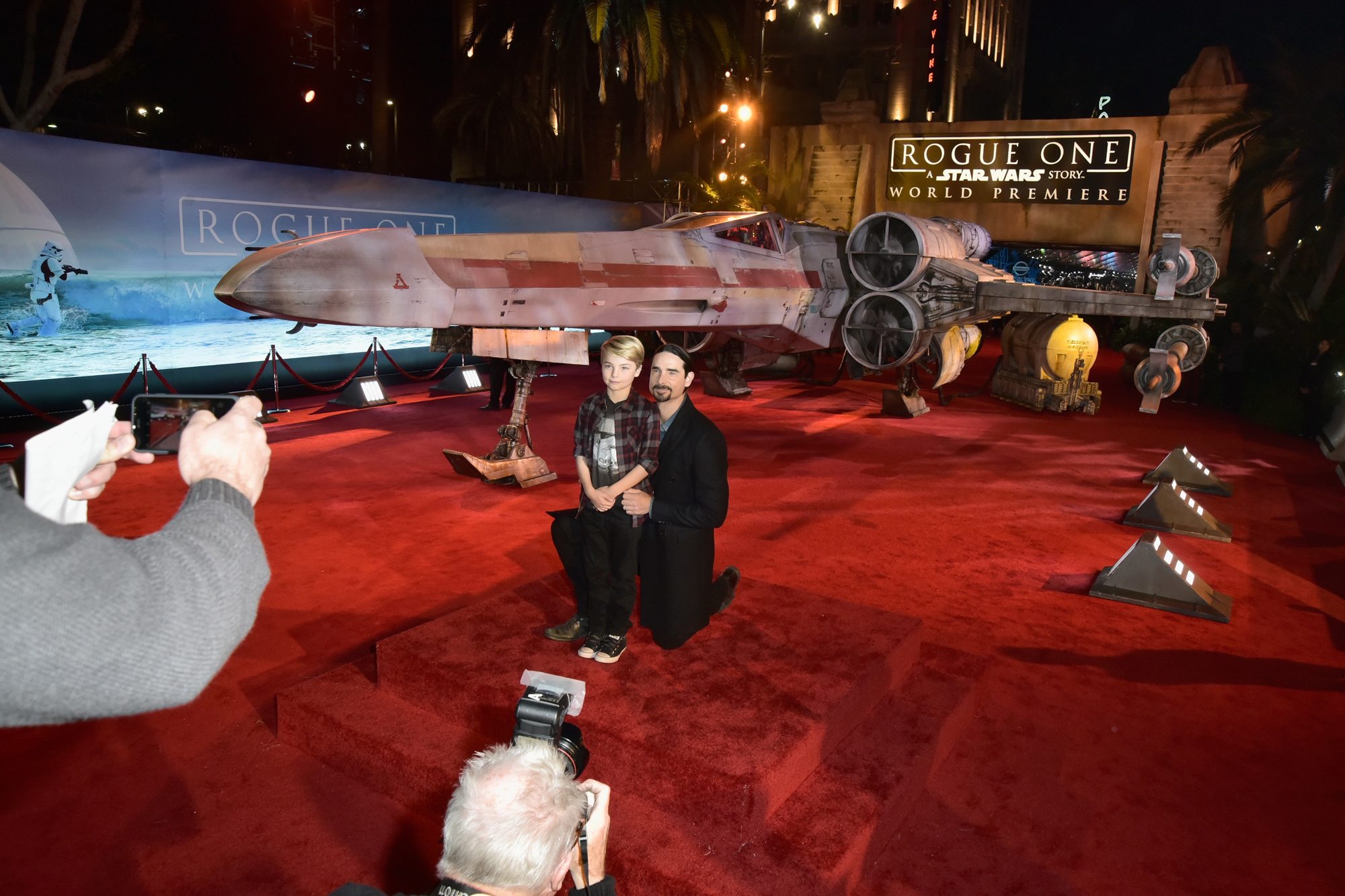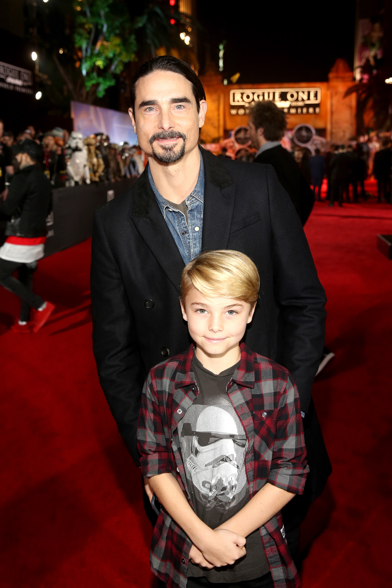 HOLLYWOOD, CA – DECEMBER 10: Singer Kevin Richardson of the Backstreet Boys (L) and Mason Richardson attend The World Premiere of Lucasfilm’s highly anticipated, first-ever, standalone Star Wars adventure, “Rogue One: A Star Wars Story” at the Pantages Theatre on December 10, 2016 in Hollywood, California. (Photo by Marc Flores/Getty Images for Disney) *** Local Caption *** Kevin Richardson; Mason Richardson