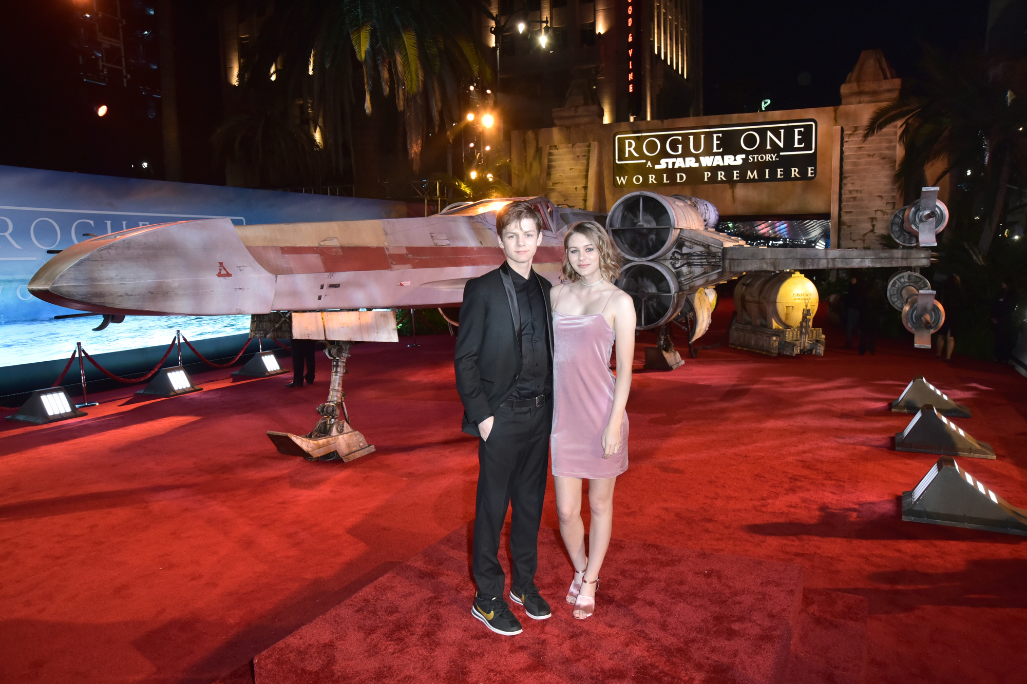 HOLLYWOOD, CA – DECEMBER 10: Actor Micah Fowler (L) and guest attend The World Premiere of Lucasfilm’s highly anticipated, first-ever, standalone Star Wars adventure, “Rogue One: A Star Wars Story” at the Pantages Theatre on December 10, 2016 in Hollywood, California. (Photo by Marc Flores/Getty Images for Disney) *** Local Caption *** Micah Fowler