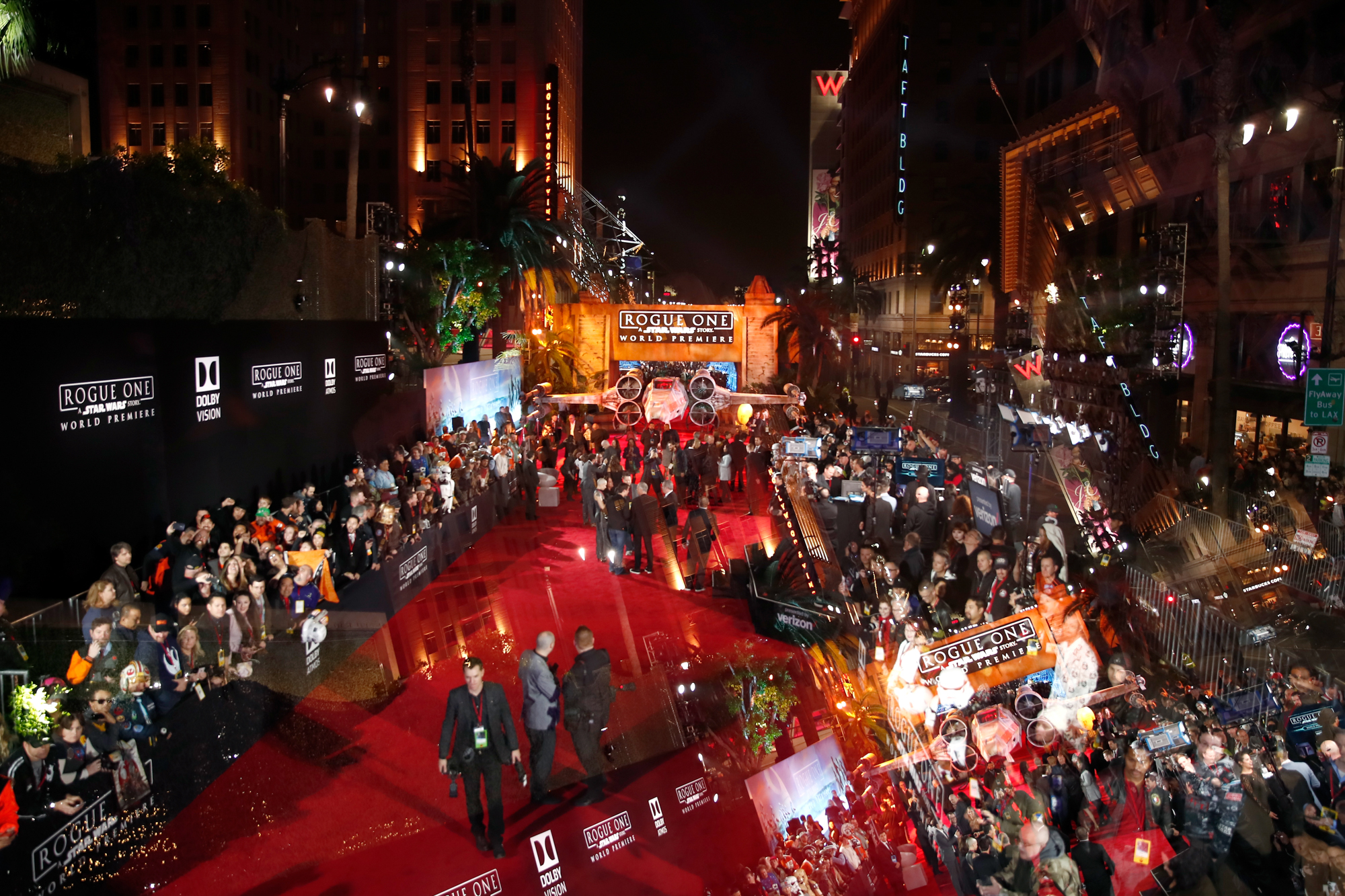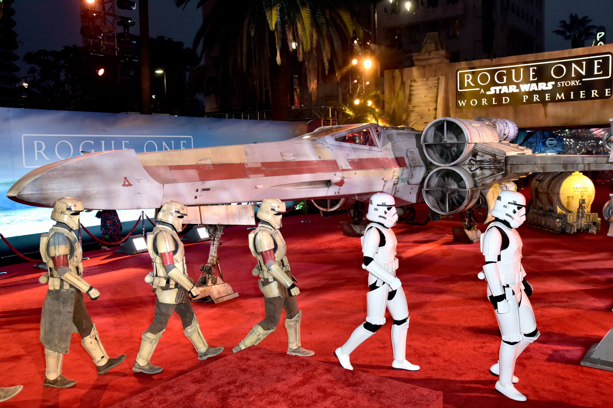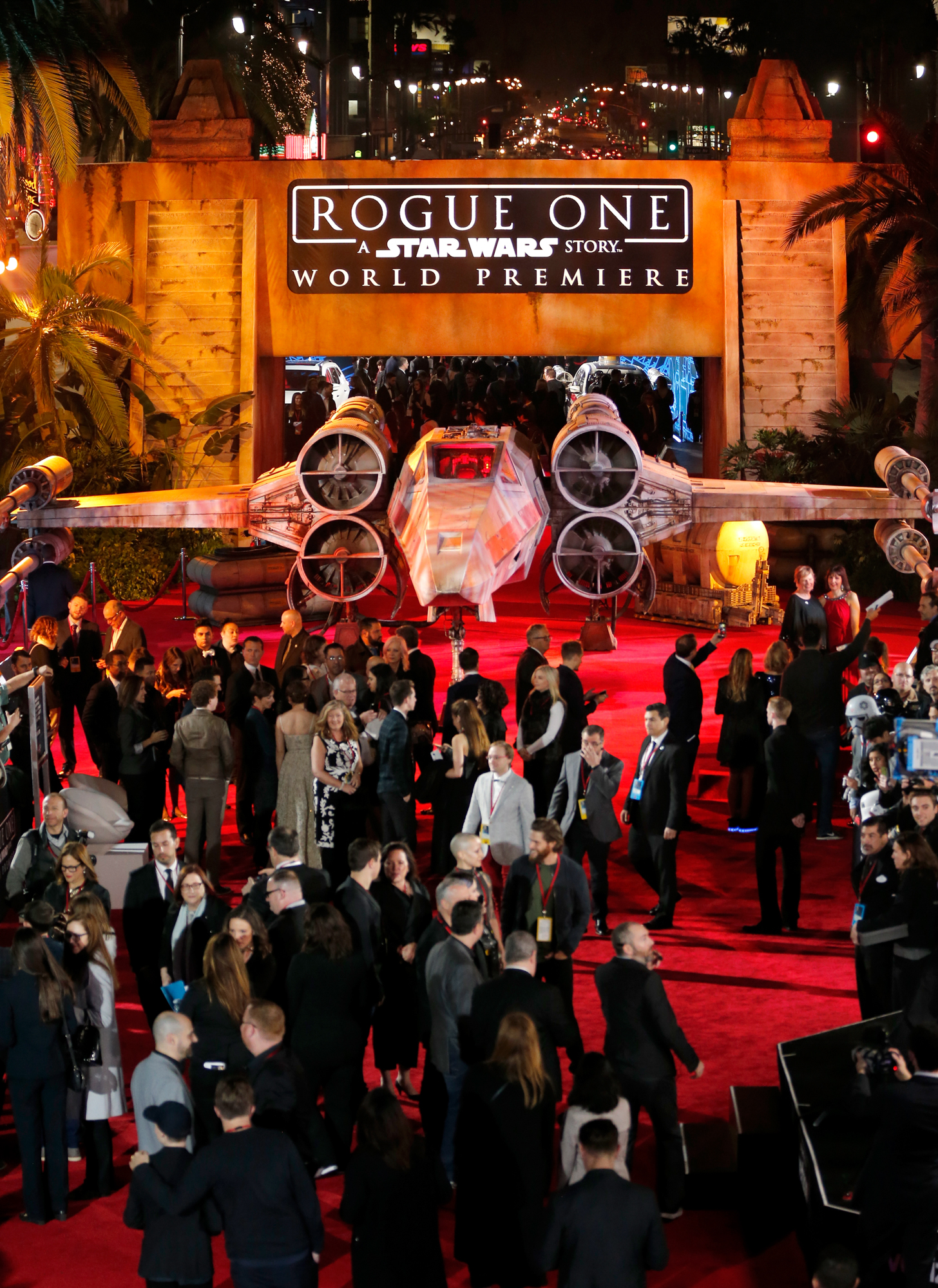 HOLLYWOOD, CA – DECEMBER 10: A view of the atmosphere at The World Premiere of Lucasfilm’s highly anticipated, first-ever, standalone Star Wars adventure, “Rogue One: A Star Wars Story” at the Pantages Theatre on December 10, 2016 in Hollywood, California. (Photo by Marc Flores/Getty Images for Disney)