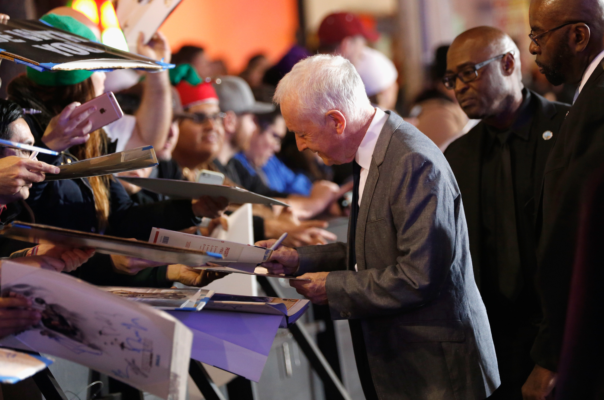 HOLLYWOOD, CA – DECEMBER 10: Composer Michael Giacchino (R) signs autographs at The World Premiere of Lucasfilm’s highly anticipated, first-ever, standalone Star Wars adventure, “Rogue One: A Star Wars Story” at the Pantages Theatre on December 10, 2016 in Hollywood, California. (Photo by Rich Polk/Getty Images for Disney) *** Local Caption *** Michael Giacchino