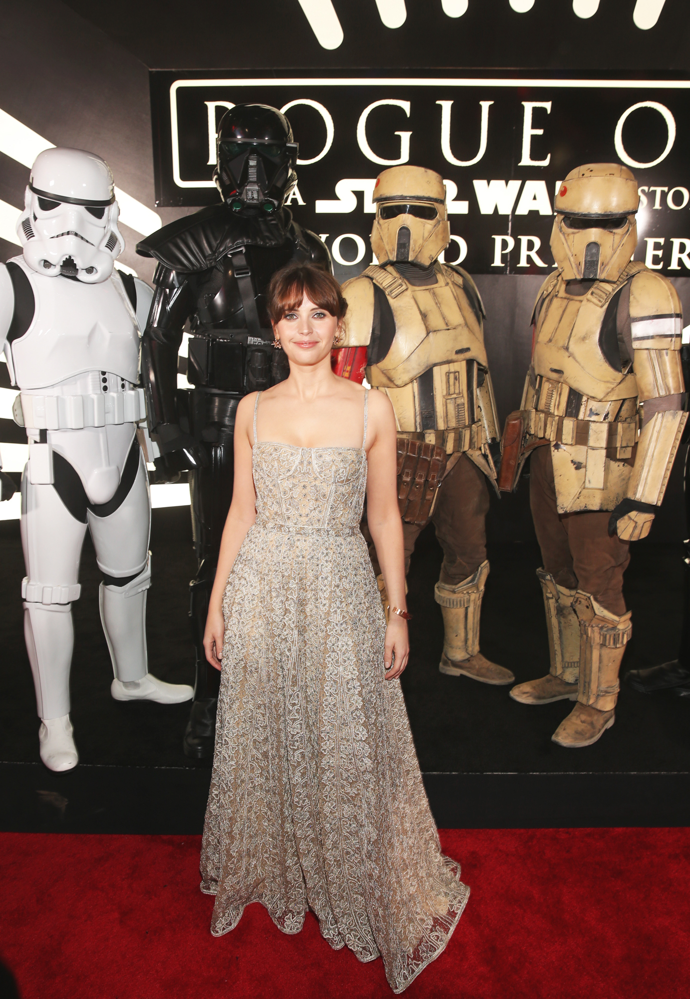 HOLLYWOOD, CA – DECEMBER 10: Actress Felicity Jones attends The World Premiere of Lucasfilm’s highly anticipated, first-ever, standalone Star Wars adventure, “Rogue One: A Star Wars Story” at the Pantages Theatre on December 10, 2016 in Hollywood, California. (Photo by Charley Gallay/Getty Images for Disney) *** Local Caption *** Felicity Jones
