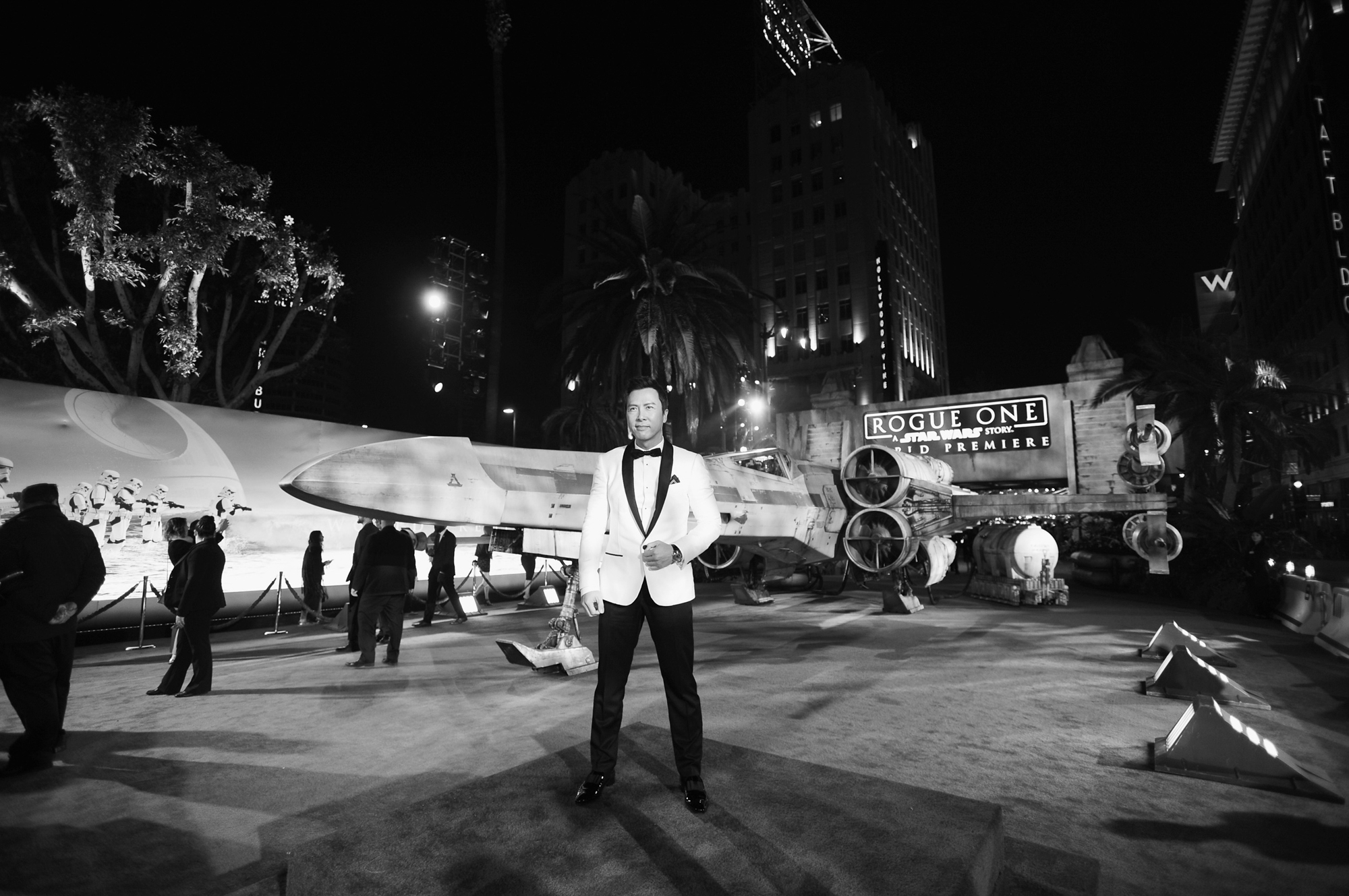 HOLLYWOOD, CA – DECEMBER 10: (EDITORS NOTE: Image has been shot in black and white. Color version not available.) Actor Donnie Yen attends The World Premiere of Lucasfilm’s highly anticipated, first-ever, standalone Star Wars adventure, “Rogue One: A Star Wars Story” at the Pantages Theatre on December 10, 2016 in Hollywood, California. (Photo by Charley Gallay/Getty Images for Disney) *** Local Caption *** Donnie Yen