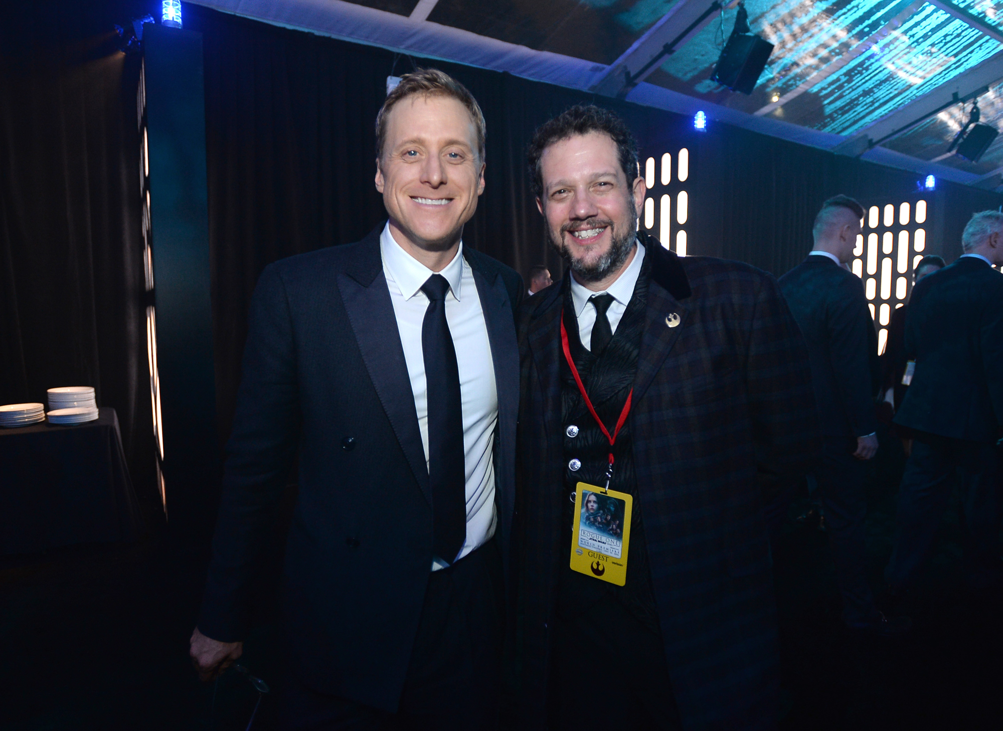 HOLLYWOOD, CA – DECEMBER 10: Actor Alan Tudyk (L) and composer Michael Giacchino attend The World Premiere of Lucasfilm’s highly anticipated, first-ever, standalone Star Wars adventure, “Rogue One: A Star Wars Story” at the Pantages Theatre on December 10, 2016 in Hollywood, California. (Photo by Charley Gallay/Getty Images for Disney) *** Local Caption *** Alan Tudyk; Michael Giacchino