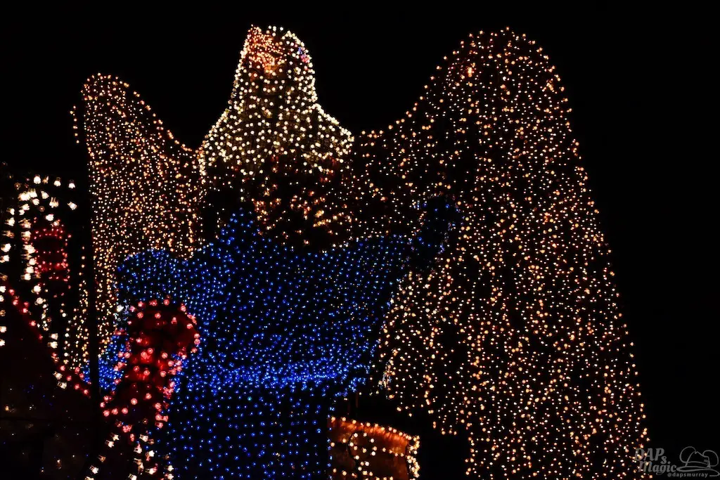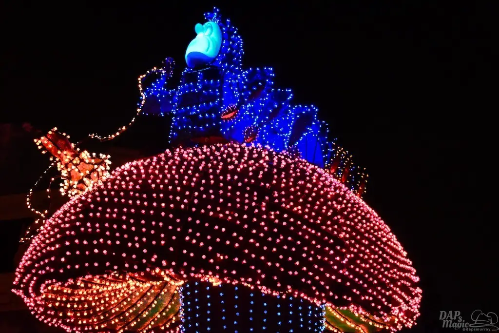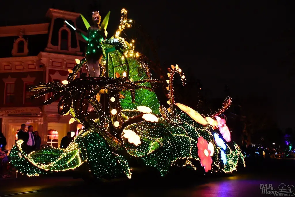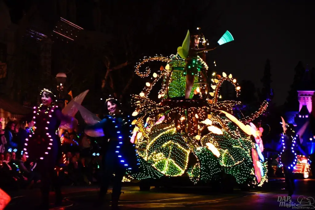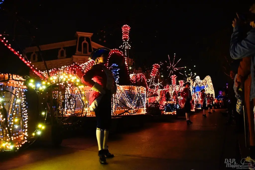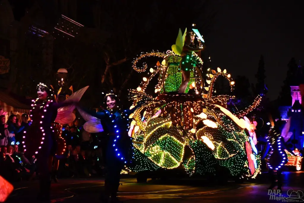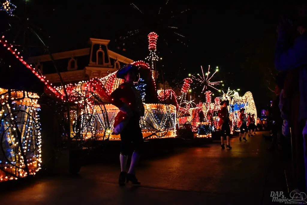 Disneyland’s Main Street Electrical Parade now begins with Casey Jr. leading the way. The drum that Mickey Mouse sits atop is back with the original marquee that signifies the title of the parade. Everything else seemed polished and pristine for the return. Tinker Bell’s float, which was a new addition a few years back, is now with Captain Hook’s ship midway through the lineup.