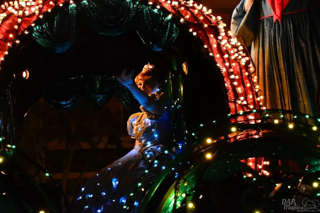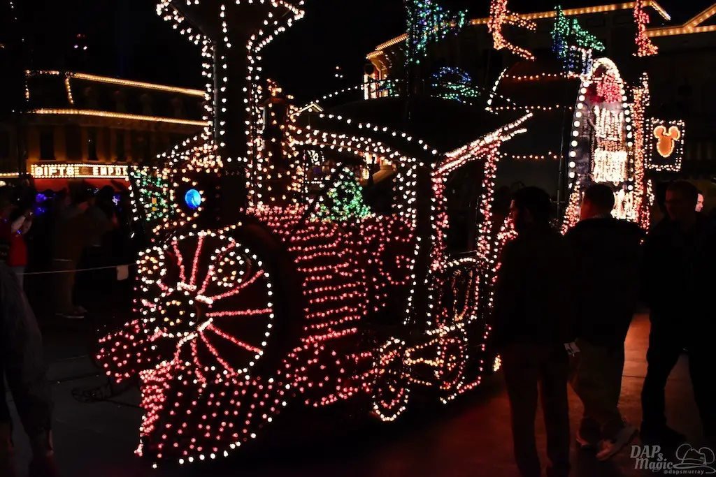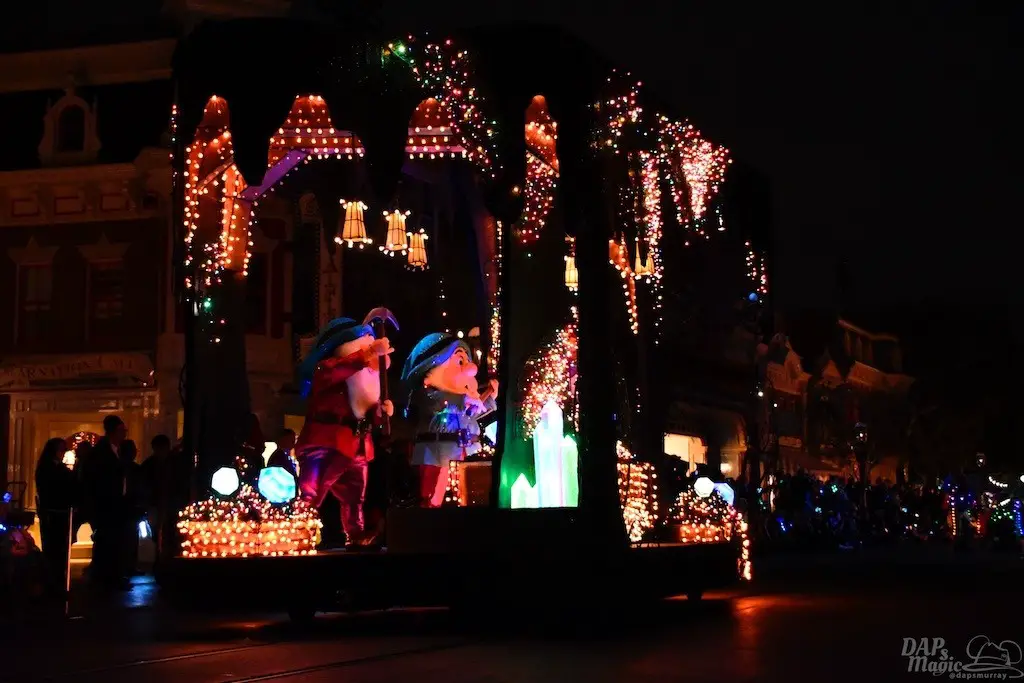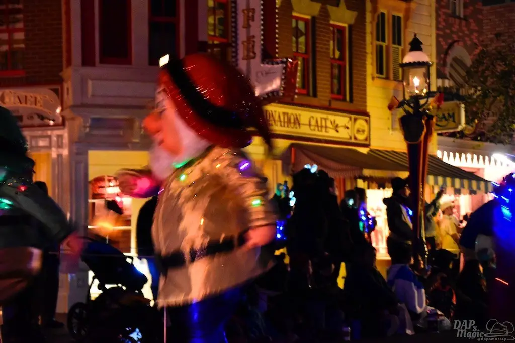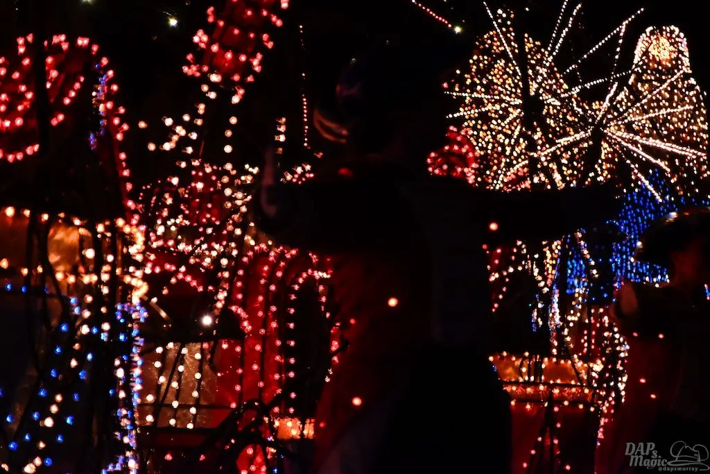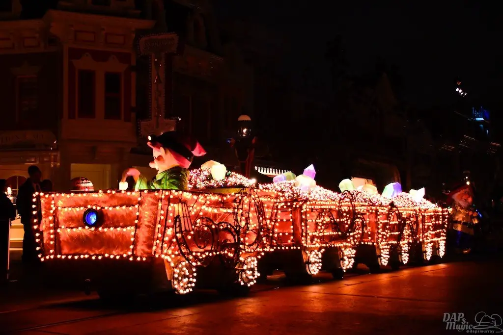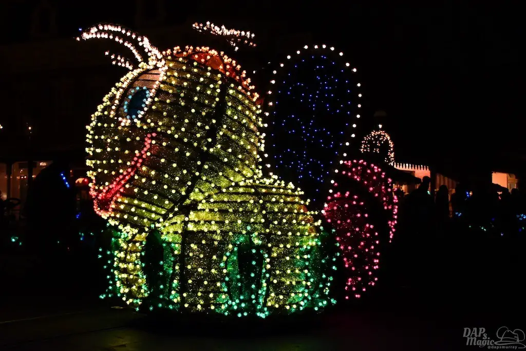 Disneyland’s Main Street Electrical Parade now begins with Casey Jr. leading the way. The drum that Mickey Mouse sits atop is back with the original marquee that signifies the title of the parade. Everything else seemed polished and pristine for the return. Tinker Bell’s float, which was a new addition a few years back, is now with Captain Hook’s ship midway through the lineup.