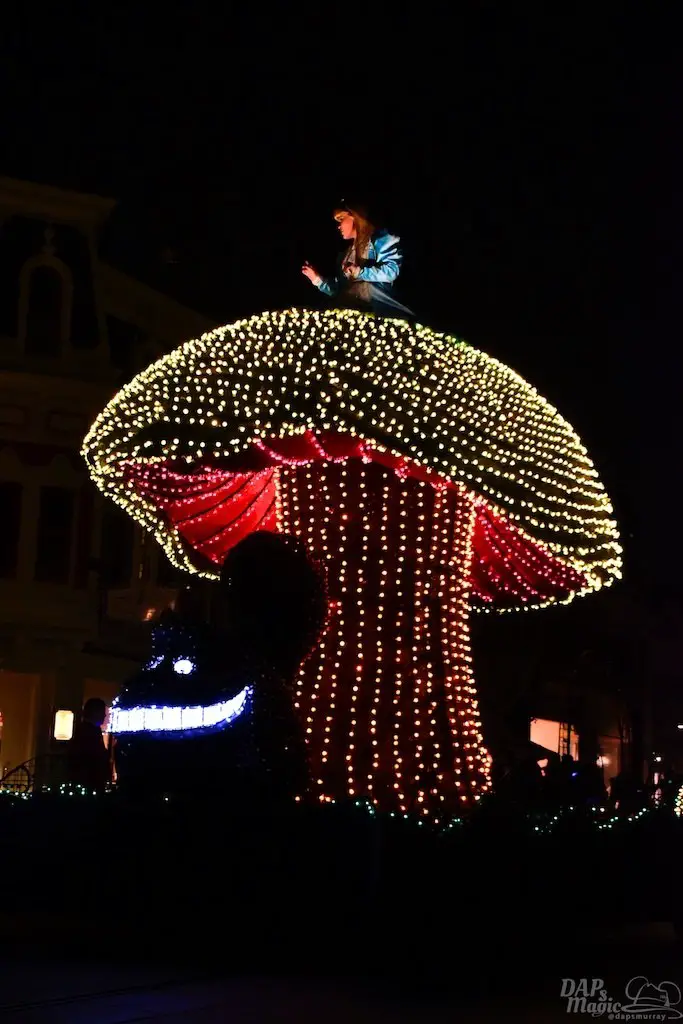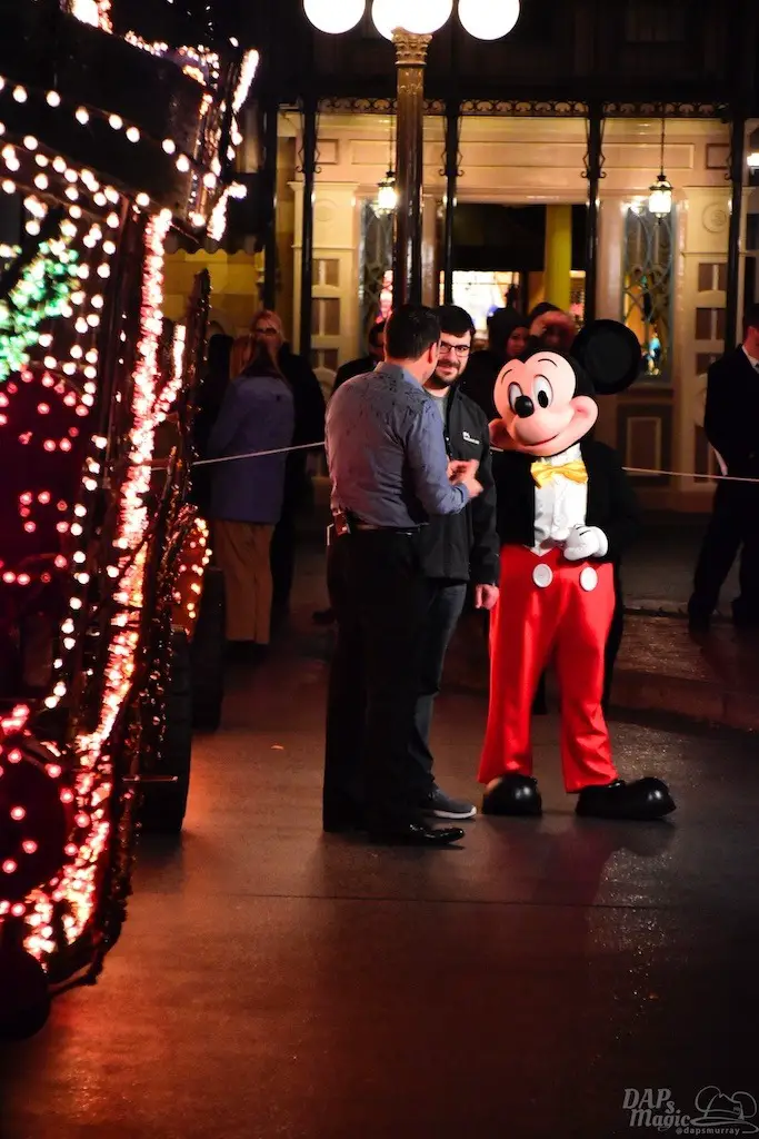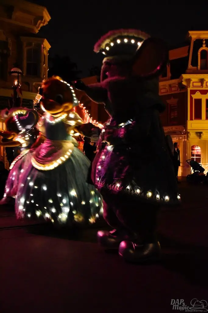 Following the parade’s performance, a few floats were lined up along the Main Street parade route for photos. Elliot and a few critters from Alice’s unit were included. Casey Jr. and the drum were only available for press who were present that night.