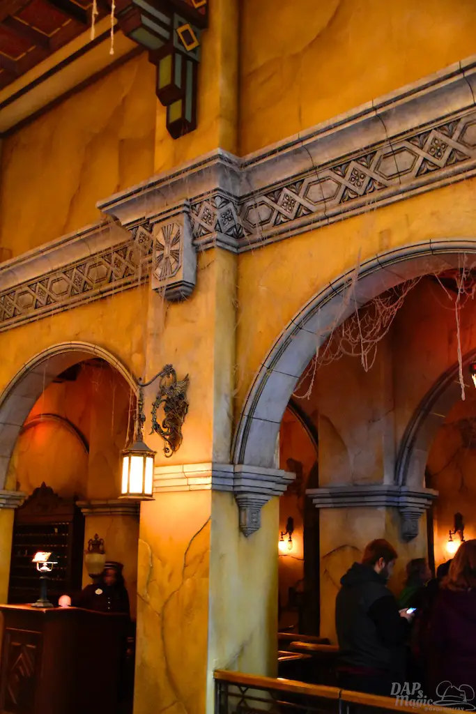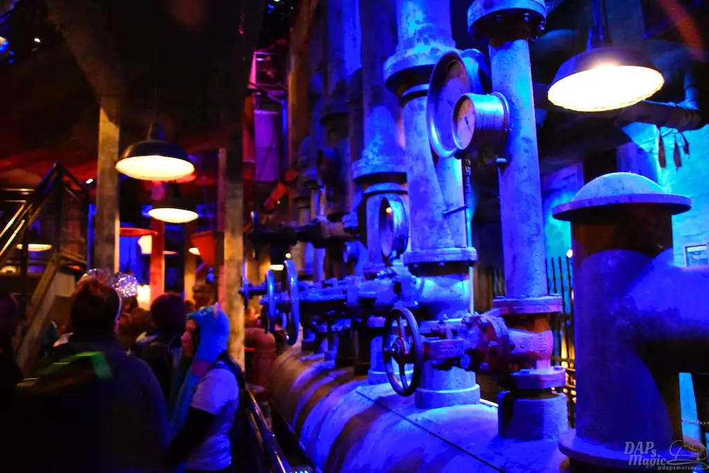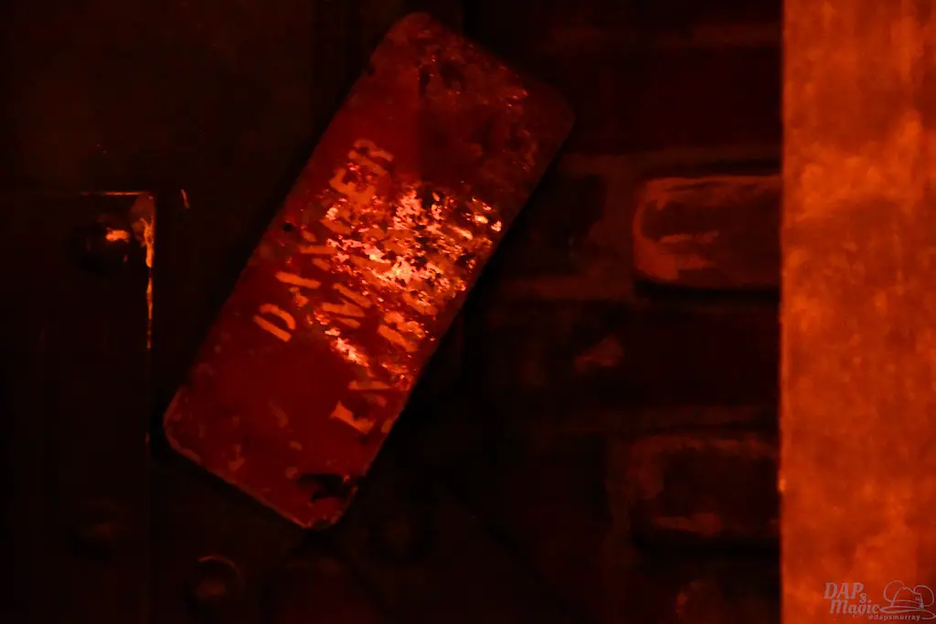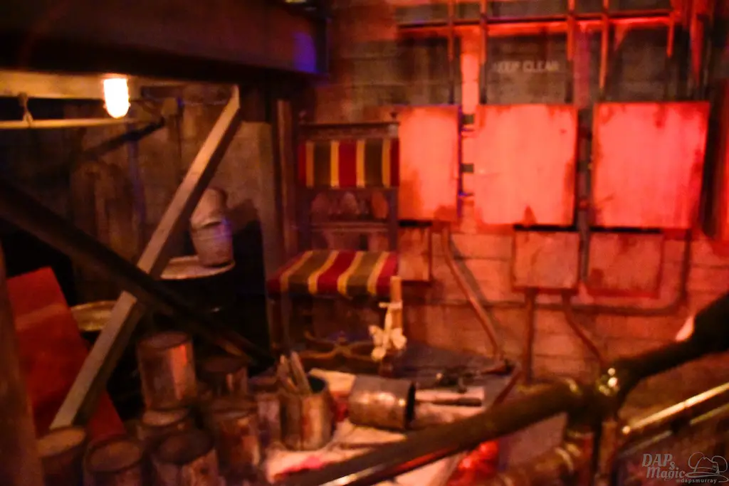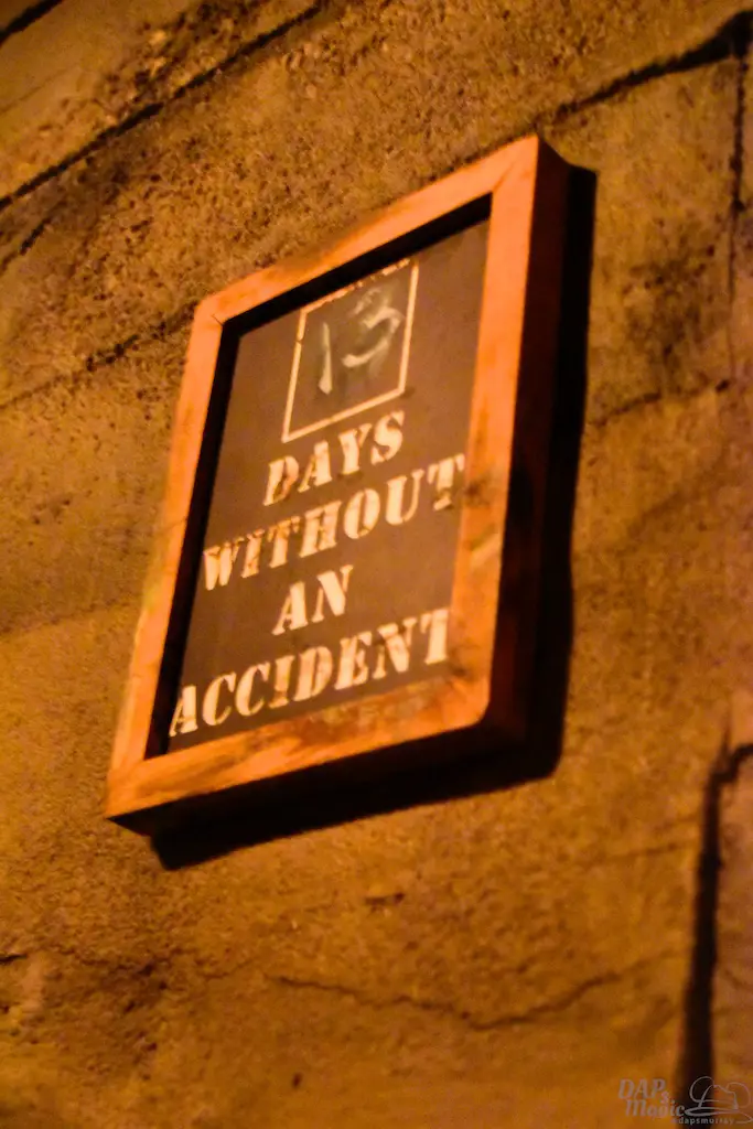 Gags came not in the waiting area, but from cast members. They were able to become part of the story with hilarious safety spiels that carried jokes like “If you need anything feel free to scream.” They played up being creepy bellhops and it made the ride that much better. My favorite gag is a sign located on some pipes. The sign reads “Danger Man In Boiler.” A strange thing to say in any context.