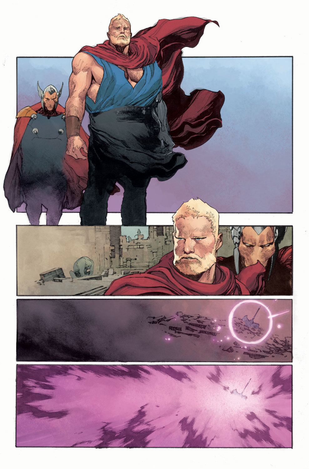 New York, NY—February 24th, 2017 — This is it! A mystery years in the telling will finally be unfurled! Once upon a time, the God of Thunder was rendered unworthy. Not by a great and terrible foe, but by a mere whisper. At long last, the contents of that whisper will be revealed! Today, Marvel is pleased to present your look inside THE UNWORTHY THOR #5 – the senses-shattering final issue! Superstar creators Jason Aaron and Olivier Coipel bring the thunder and give fans the answers they’ve been waiting for – just HOW did the Odinson become unworthy of his magic hammer Mjolnir? Is redemption on the horizon for the fallen son of Asgard? No matter what happens next, life will never be the same for the Odinson. No fan should miss out on the blockbuster conclusion – THE UNWORTHY THOR #5 – on-sale in comic shops everywhere on March 22nd!