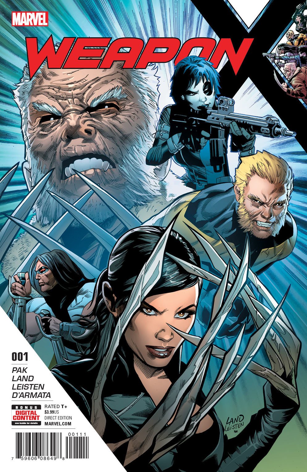 New York, NY—March, 15th 2017 — Decades ago, the Weapon X program engineered some of the deadliest mutant killers on the planet. Until one day, they mysteriously vanished. But this April, they’re reopening their doors once again! Today, Marvel is pleased to present your first look inside WEAPON X #1 – the new series reuniting the best-selling X-Men: Phoenix Endsong creative team of Greg Pak and Greg Land! Under the leadership of its mysterious new director, with more funding and more Adamantium at its disposal than ever before, the Weapon X program has a new mission – exterminate all mutants! And they’ve got Old Man Logan, Sabretooth, Lady Deathstrike, Warpath and Domino in their crosshairs! Will they regret picking a fight with 5 of the most dangerous mutants in the Marvel Universe? Or are their days numbered? Find out on April 12th as the claws come out in the can’t-miss WEAPON X #1!