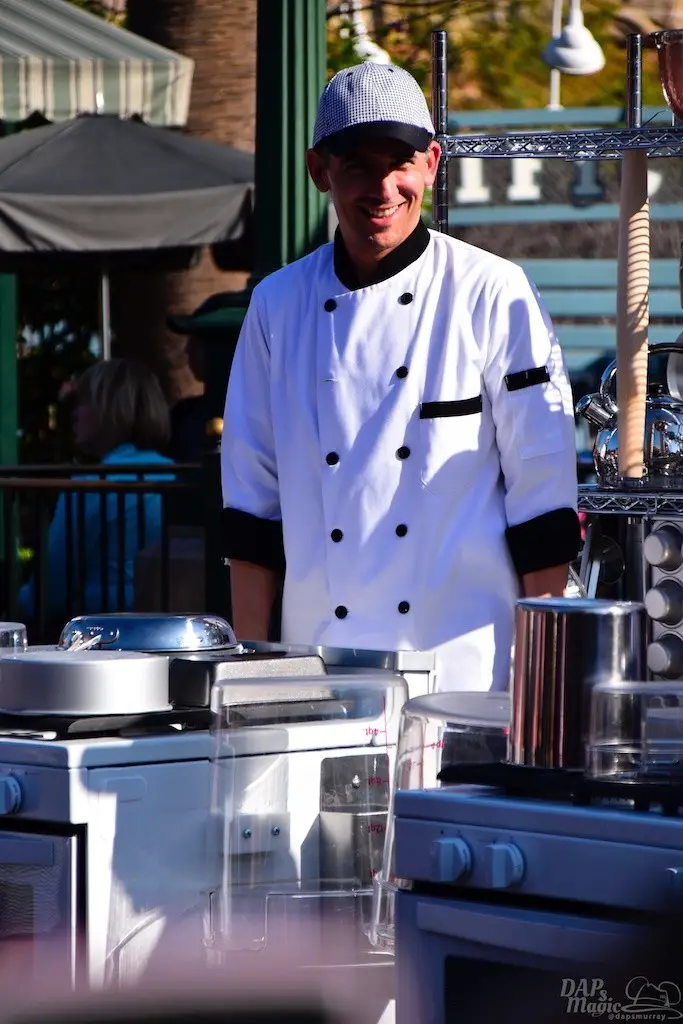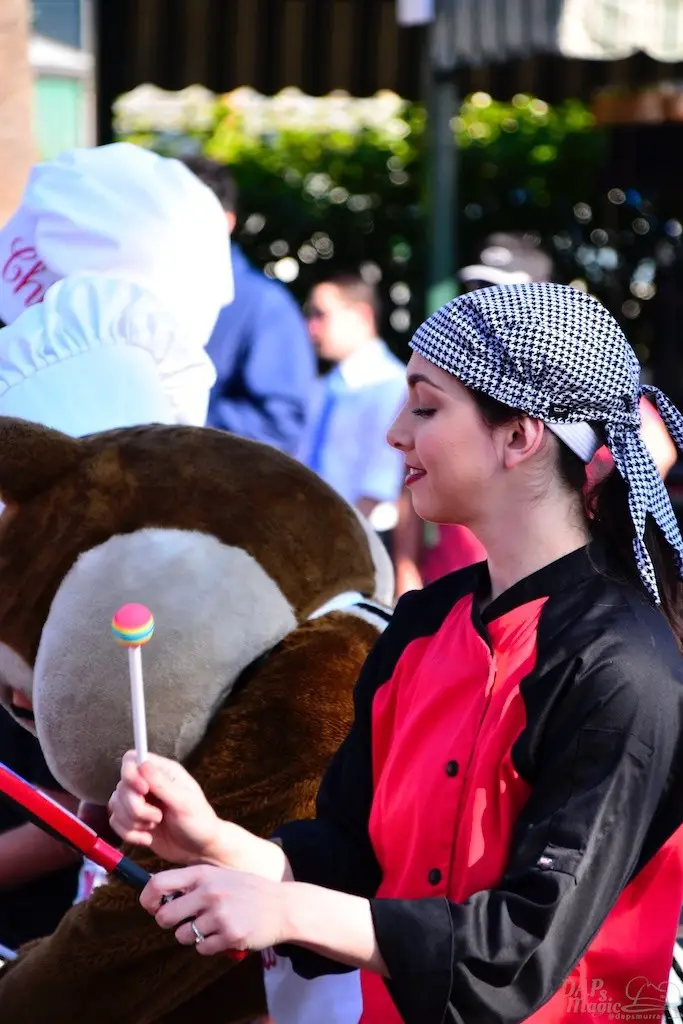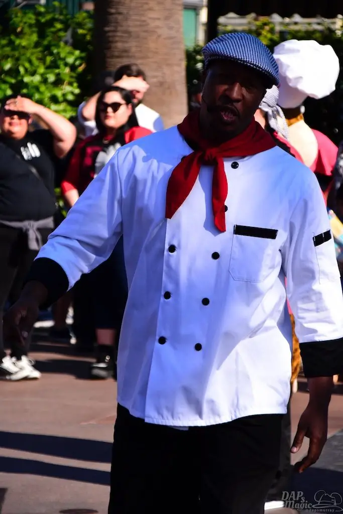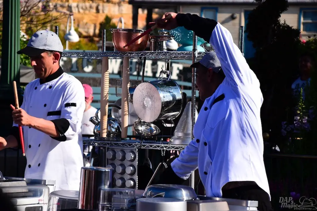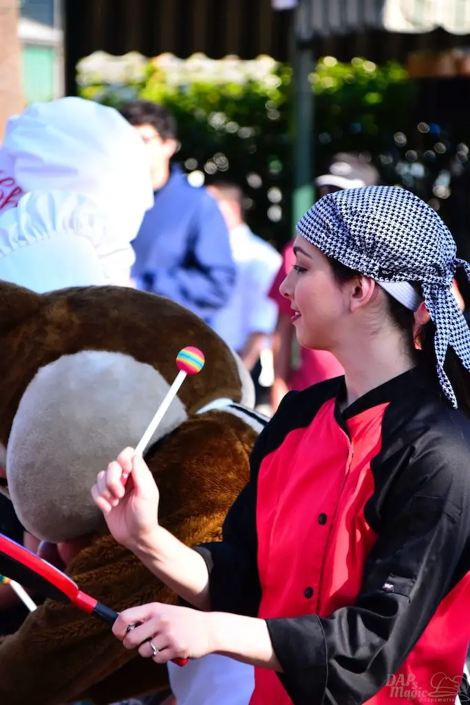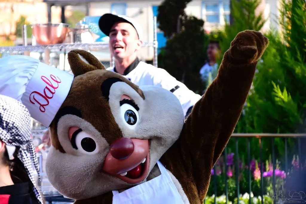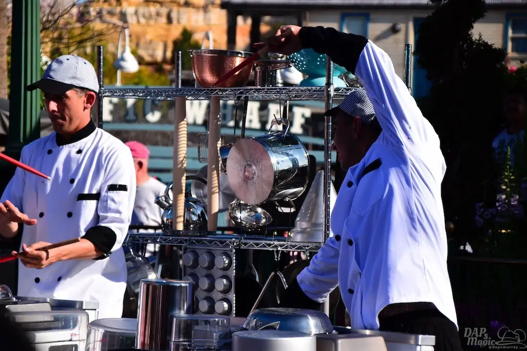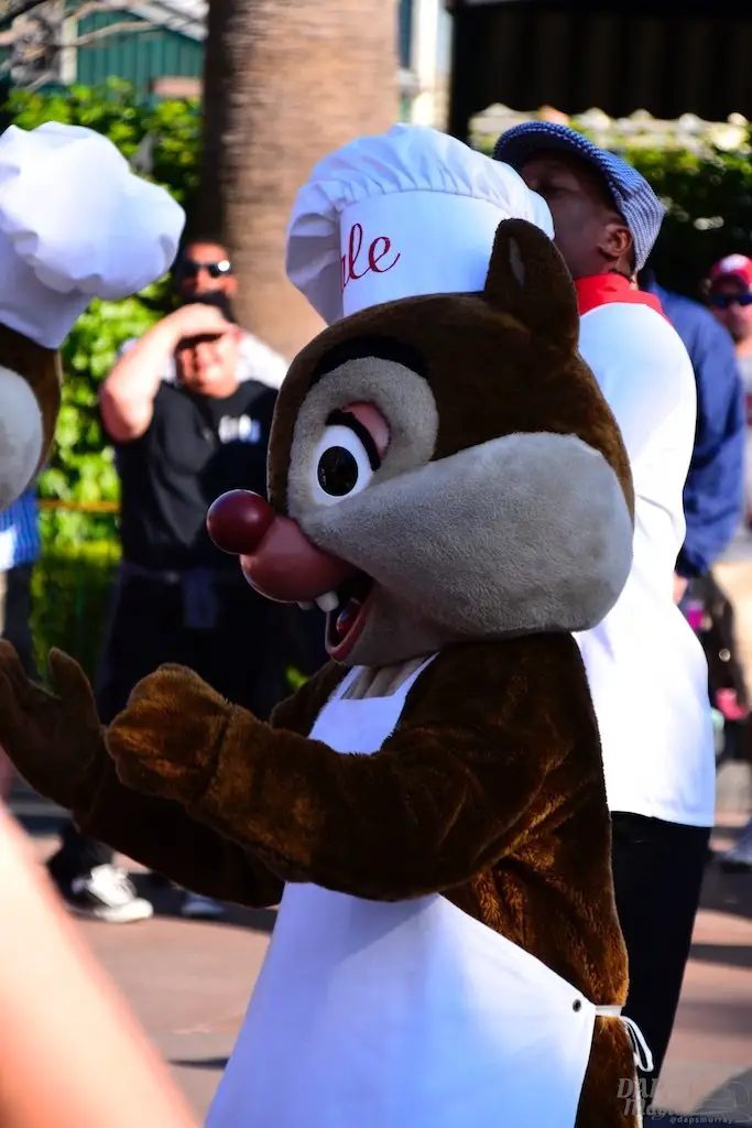 Both Spring and Food and Wine have sprung at the Disneyland Resort. So, this Sunday we did a tour of both. Of course we had to start with the Food and Wine Festival at Disney California Adventure. Besides food, there is a great assortment of entertainment offerings, including Jammin’ Chefs. This show has Chip and Dale joining an assortment of dancing and rhythmic chefs in song.