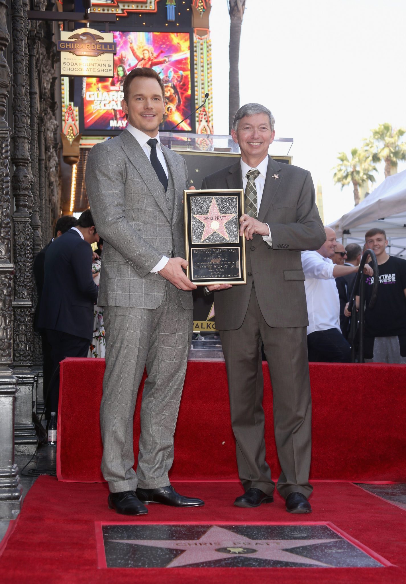 HOLLYWOOD, CA – APRIL 21: Hollywood Chamber of Commerce, President/CEO Leron Gubler (L) and actor Chris Pratt at the Chris Pratt Walk Of Fame Star Ceremony on April 21, 2017 in Hollywood, California. (Photo by Jesse Grant/Getty Images for Disney) *** Local Caption *** Leron Gubler; Chris Pratt