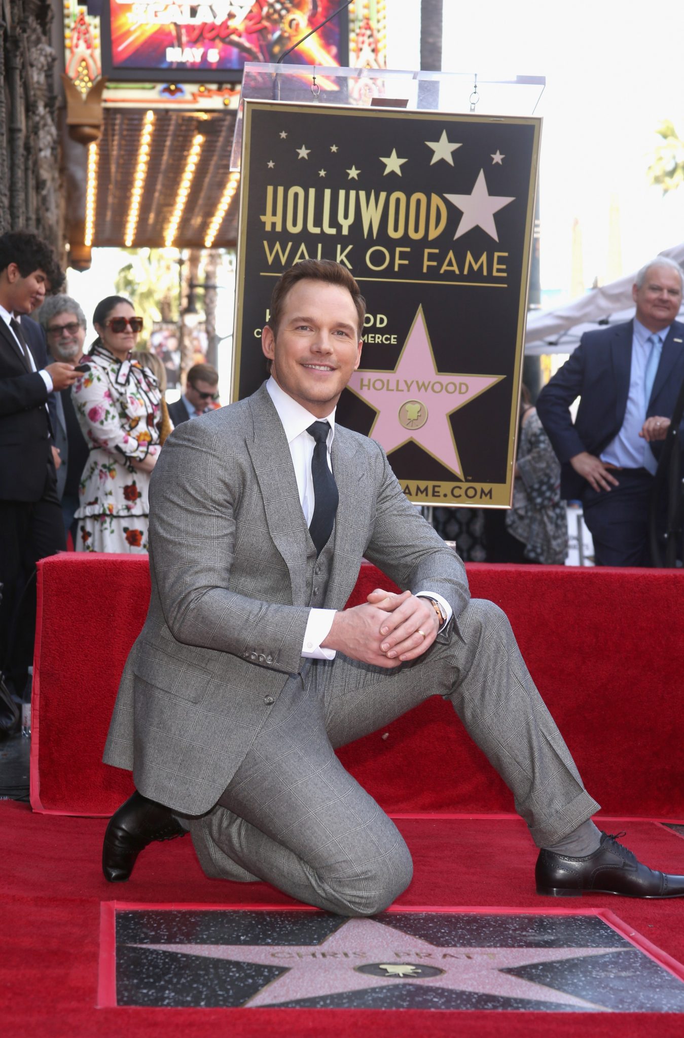 Chris Pratt received a star on the Hollywood Walk of fame during a ceremony today. The Guardians of the Galaxy star was accompanied by his wife, son, and cast mates during the ceremony. During the ceremony Pratt got quite emotional as he thanked his wife, family, coworkers and God for all that he has benefited from during his career.