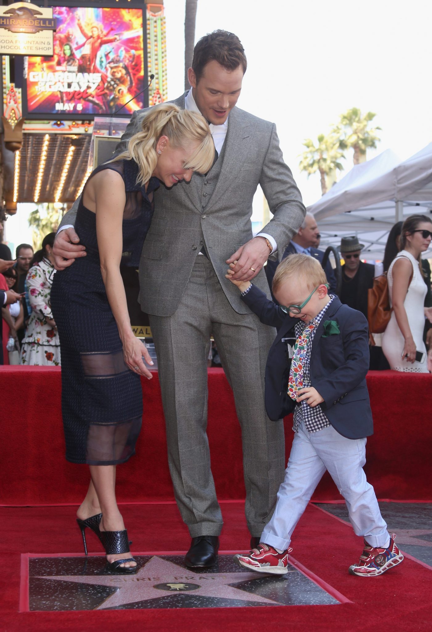 HOLLYWOOD, CA – APRIL 21: (L-R) Actor Chris Pratt, Jack Pratt and actor Anna Faris at the Chris Pratt Walk Of Fame Star Ceremony on April 21, 2017 in Hollywood, California. (Photo by Jesse Grant/Getty Images for Disney) *** Local Caption *** Chris Pratt; Jack Pratt; Anna Faris