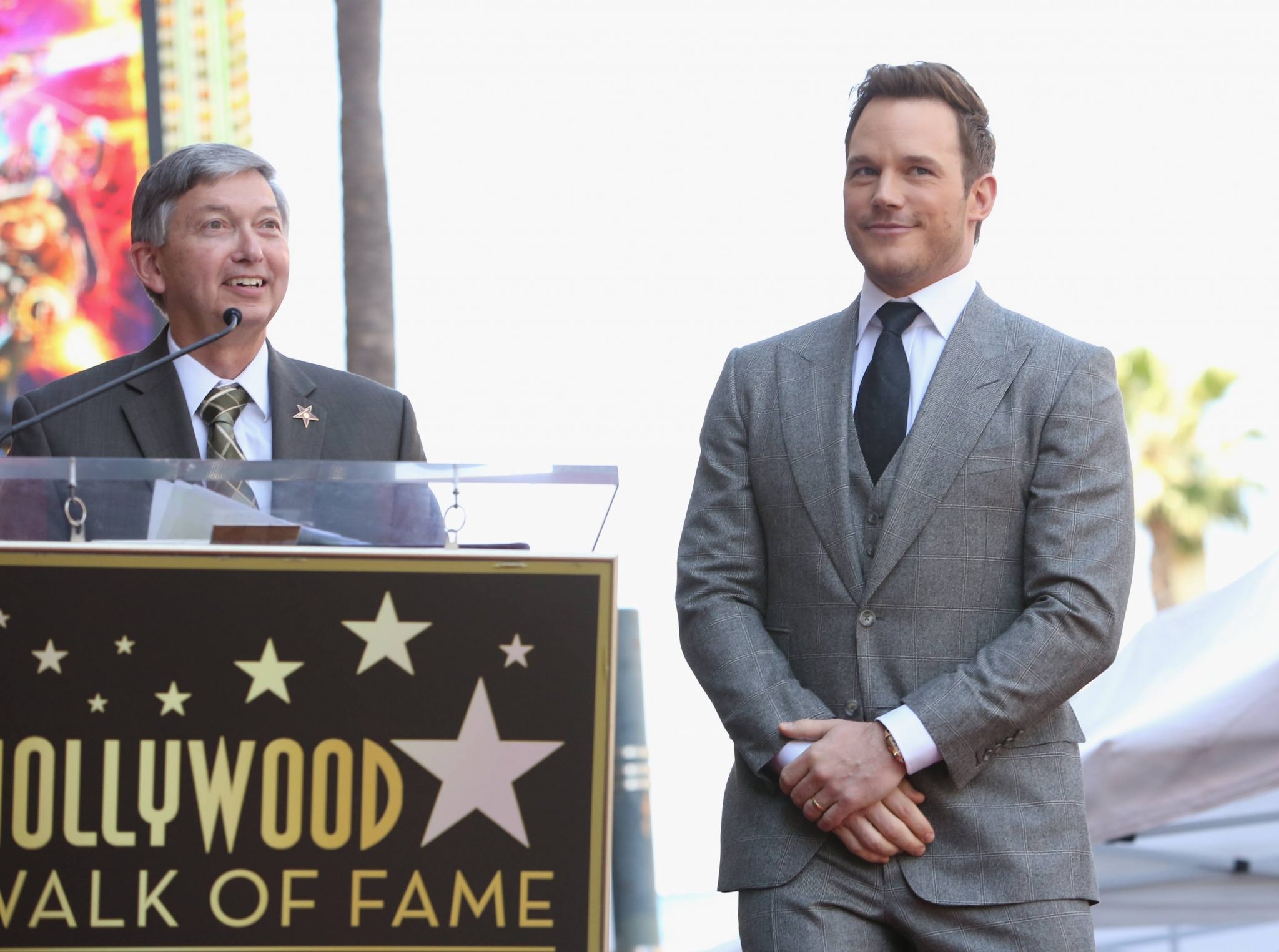 HOLLYWOOD, CA – APRIL 21: Actor Chris Pratt (L) and Hollywood Chamber of Commerce, President/CEO Leron Gubler at the Chris Pratt Walk Of Fame Star Ceremony on April 21, 2017 in Hollywood, California. (Photo by Jesse Grant/Getty Images for Disney) *** Local Caption *** Chris Pratt; Leron Gubler