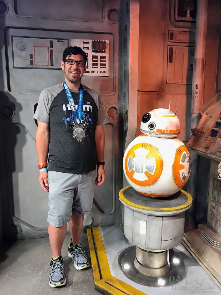 After the race, Disney’s Hollywood Studios was on the docket so that I could get some photos with characters from the franchise. I picked Kylo Ren and the new BB-8 photo ops. I also discovered that a great place to view some of the characters from A Galaxy Far, Far Away show is behind the stage at the end because they have to parade down afterward.