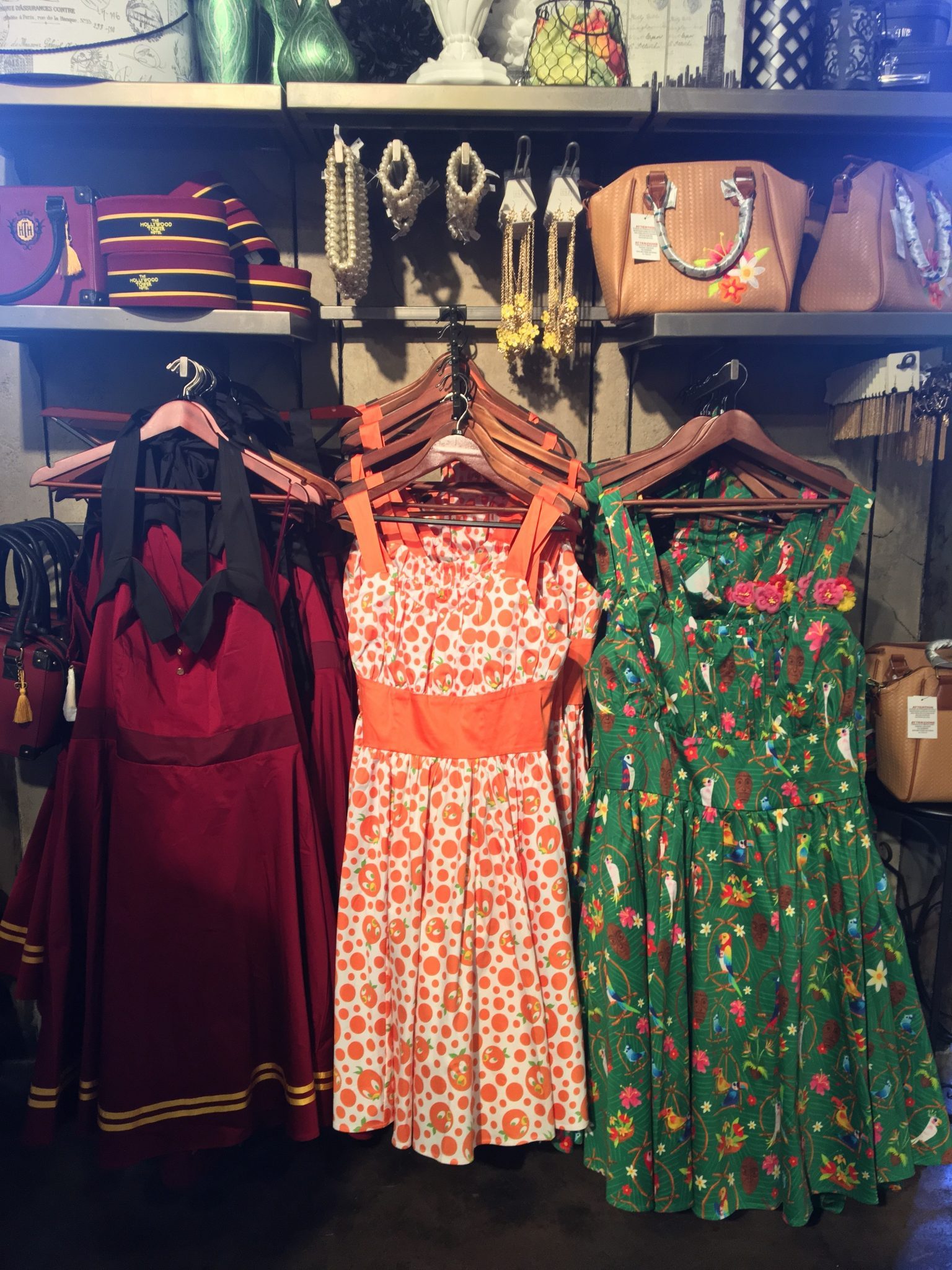 This weekend, Disney Vault 28 offered a glimpse at new line of Disney inspired dapper day dresses themed to attractions and characters alike. The Dress Shop features nods to Pirates of the Caribbean, The Enchanted Tiki Room, Haunted Mansion, it’s a small world, Tower of Terror, The Mad Tea Party, Minnie Mouse, the Orange Bird, and Snow White and the Seven Dwarfs. Each dress has corresponding accessories, such as hats, purses, jewelry, and headbands available for purchase as well. Sadly, the only dress that does not have matching accessories available for purchase is the it’s a small world dress. If you’re looking to Disney Bound for Dapper Day, this might be the place for you to check out! But hurry, these dresses will be offered for a limited time or until supplies last.