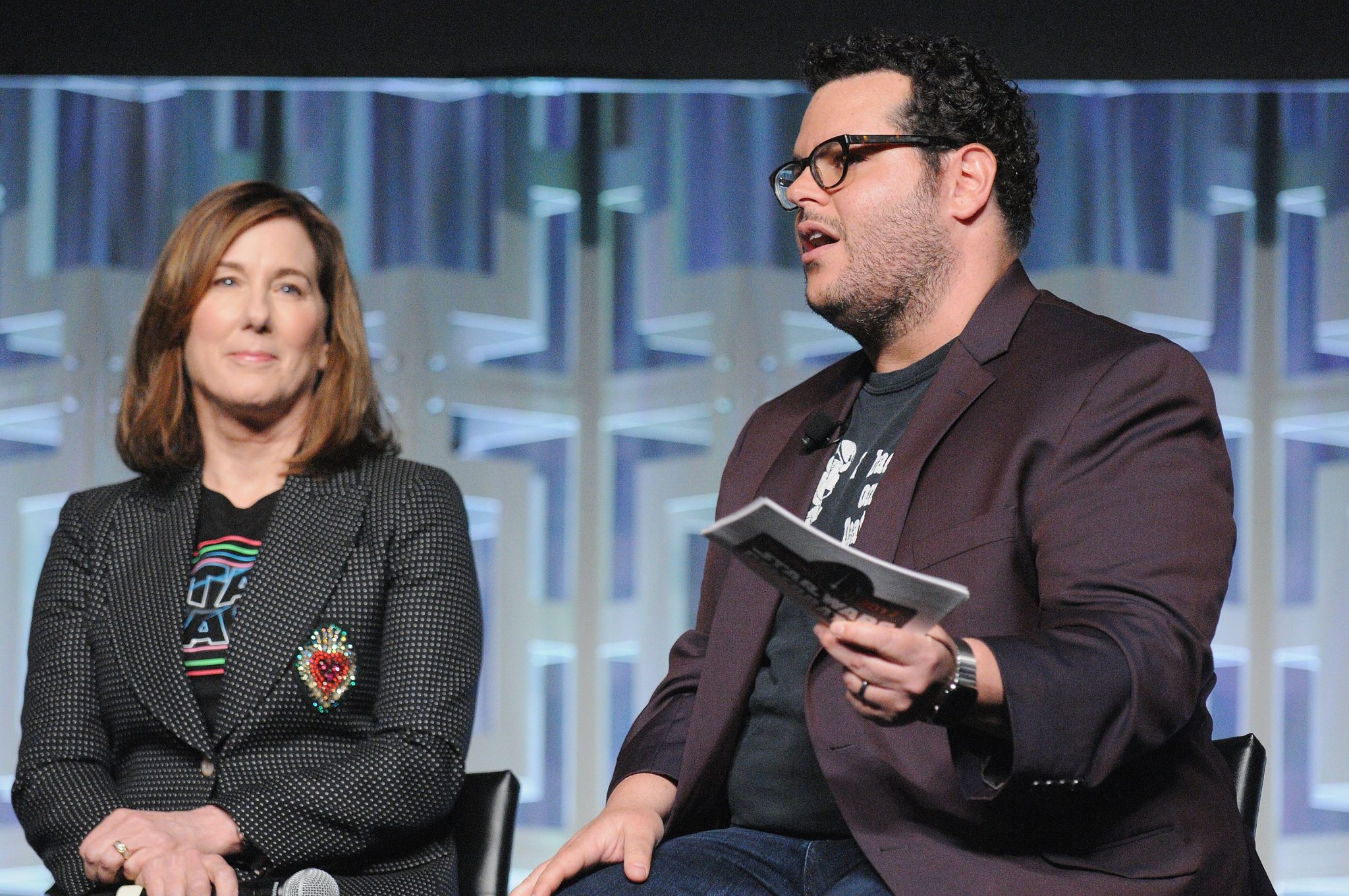 ORLANDO, FL – APRIL 14: Kathleen Kennedy and Josh Gad attend the STAR WARS: THE LAST JEDI PANEL during the 2017 STAR WARS CELEBRATION at Orange County Convention Center on April 14, 2017 in Orlando, Florida. (Photo by Gerardo Mora/Getty Images for Disney) *** Local Caption *** Kathleen Kennedy;Josh Gad