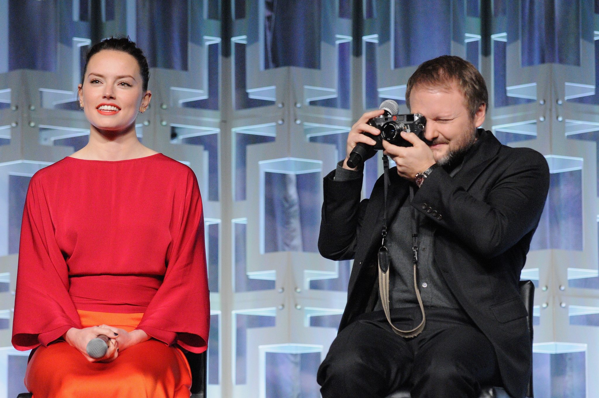 ORLANDO, FL – APRIL 14: Daisy Ridley and Rian Johnson attend the STAR WARS: THE LAST JEDI PANEL during the 2017 STAR WARS CELEBRATION at Orange County Convention Center on April 14, 2017 in Orlando, Florida. (Photo by Gerardo Mora/Getty Images for Disney) *** Local Caption *** Daisy Ridley;Rian Johnson