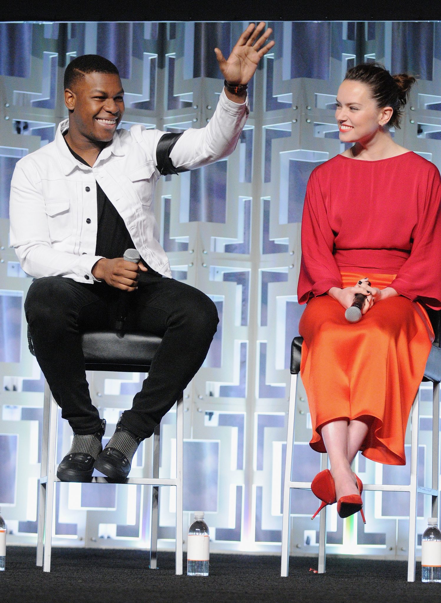 ORLANDO, FL – APRIL 14: John Boyega and Daisy Ridley attend the STAR WARS: THE LAST JEDI PANEL during the 2017 STAR WARS CELEBRATION at Orange County Convention Center on April 14, 2017 in Orlando, Florida. (Photo by Gerardo Mora/Getty Images for Disney) *** Local Caption *** John Boyega, Daisy Ridley