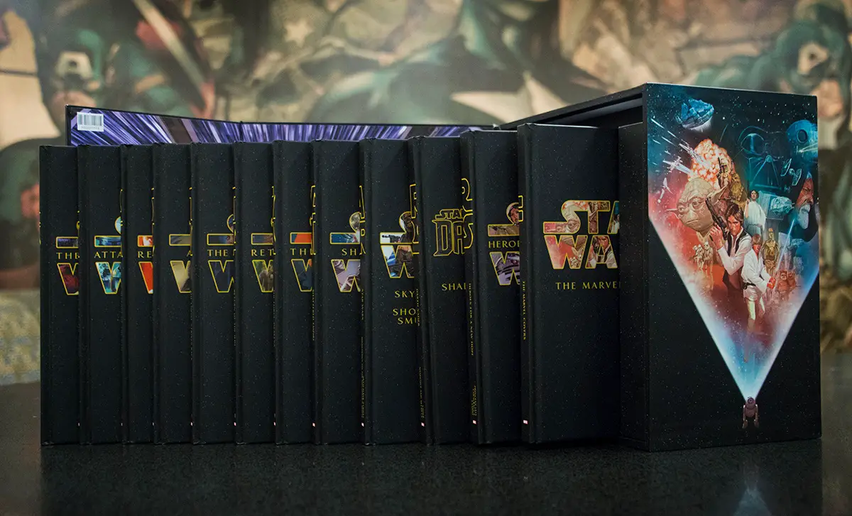 Relive the complete Marvel Comics STAR WARS saga in one complete, stunning package light years ahead of any other collection complete with 12 premiere hardcovers chronicling the history of a galaxy far, far away!