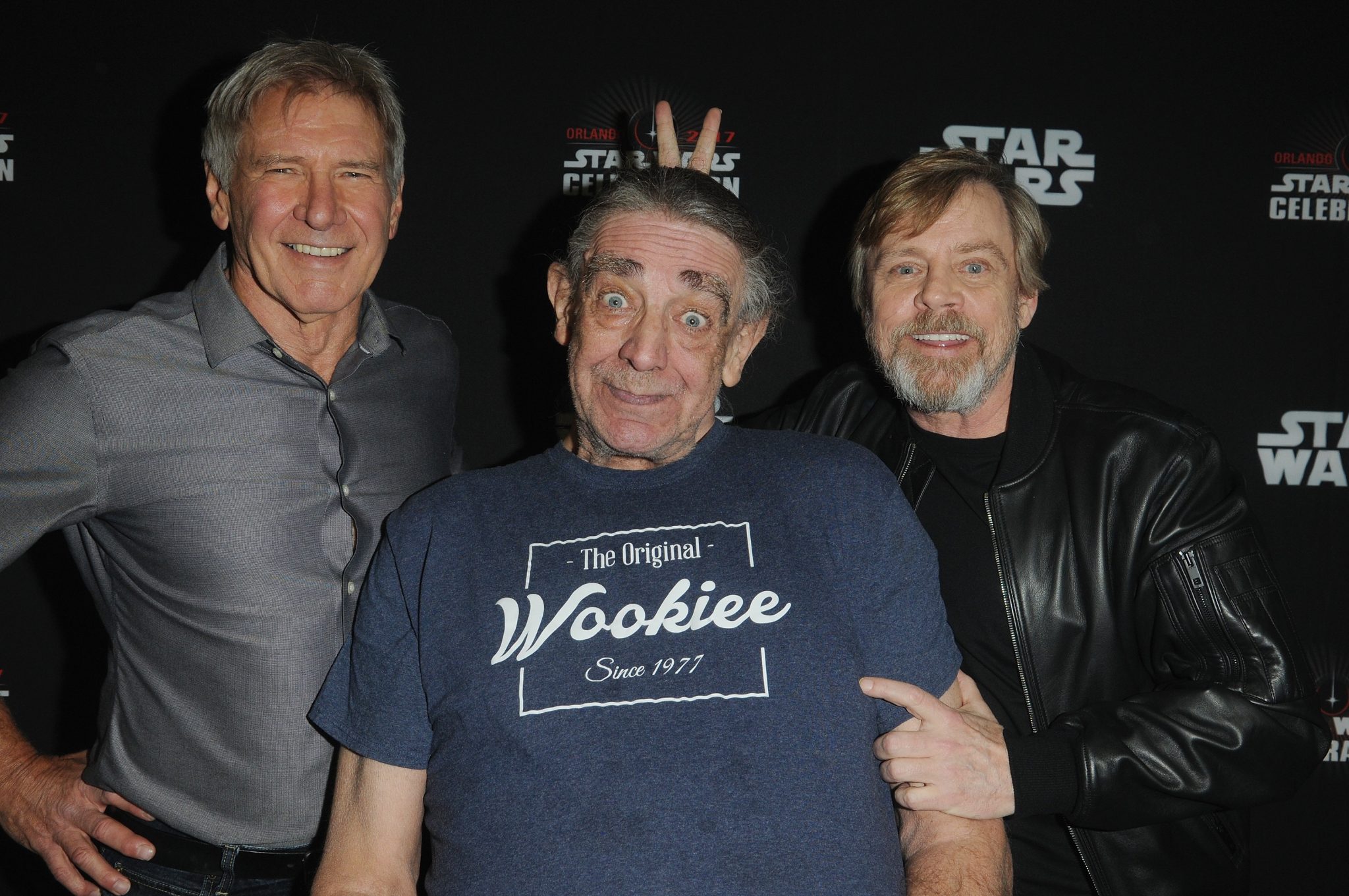 ORLANDO, FL – APRIL 13: Harrison Ford, Peter Mayhew and Mark Hamill attend the 40 YEARS OF STAR WARS PANEL during the 2017 STAR WARS CELEBRATION at Orange County Convention Center on April 13, 2017 in Orlando, Florida. (Photo by Gerardo Mora/Getty Images for Disney) *** Local Caption *** Harrison Ford;Peter Mayhew, Mark Hamill