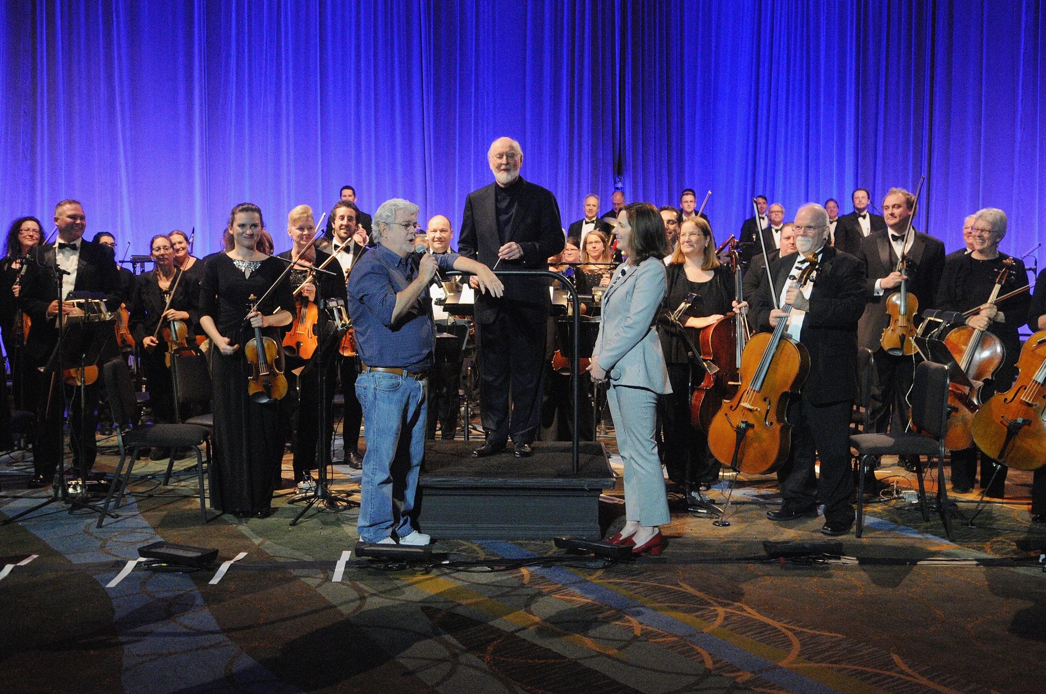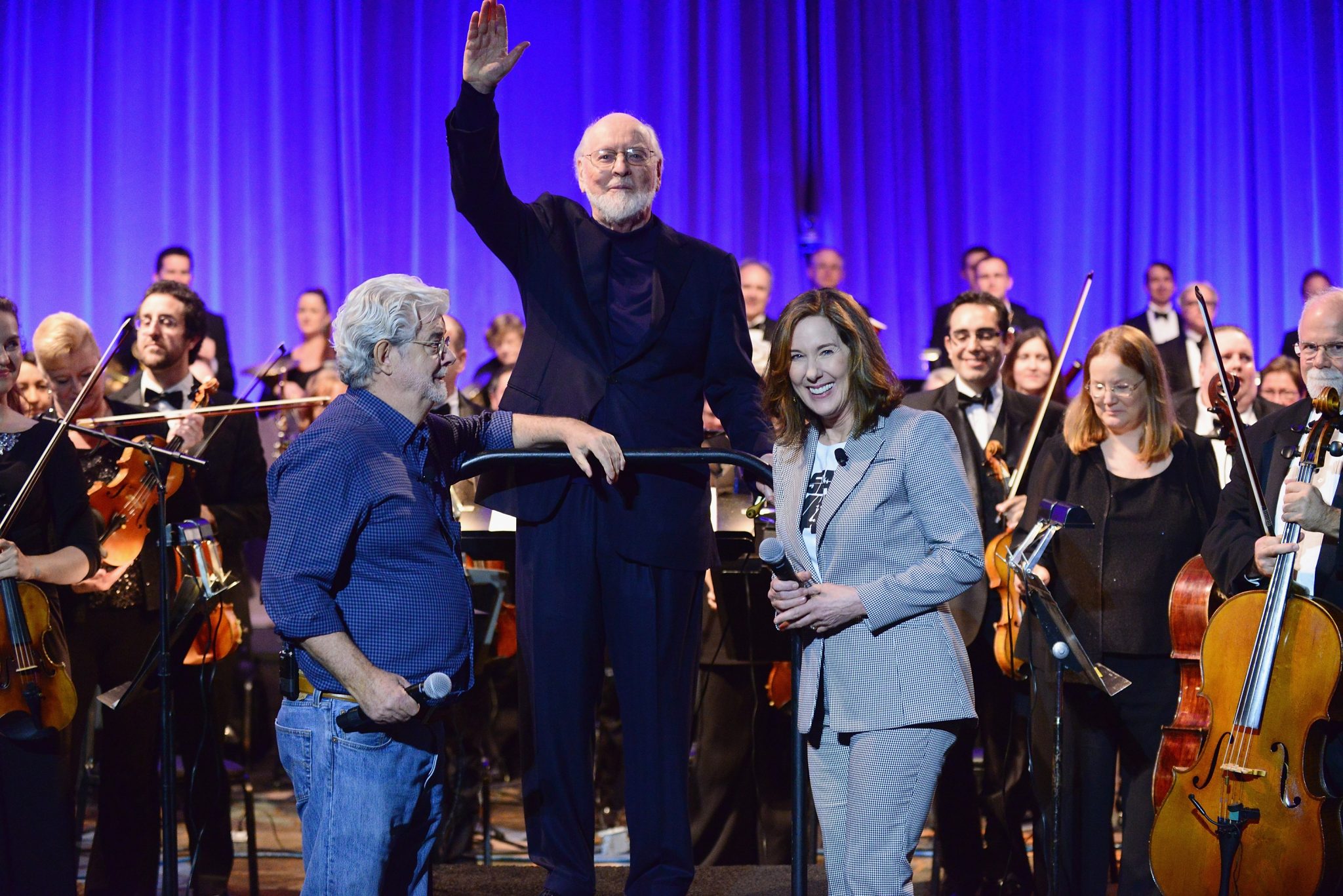 ORLANDO, FL – APRIL 13: George Lucas, John Williams and Kathleen Kennedy attend the 40 YEARS OF STAR WARS PANEL during the 2017 STAR WARS CELEBRATION at Orange County Convention Center on April 13, 2017 in Orlando, Florida. (Photo by Gerardo Mora/Getty Images for Disney) *** Local Caption *** George Lucas, John Williams, Kathleen Kennedy