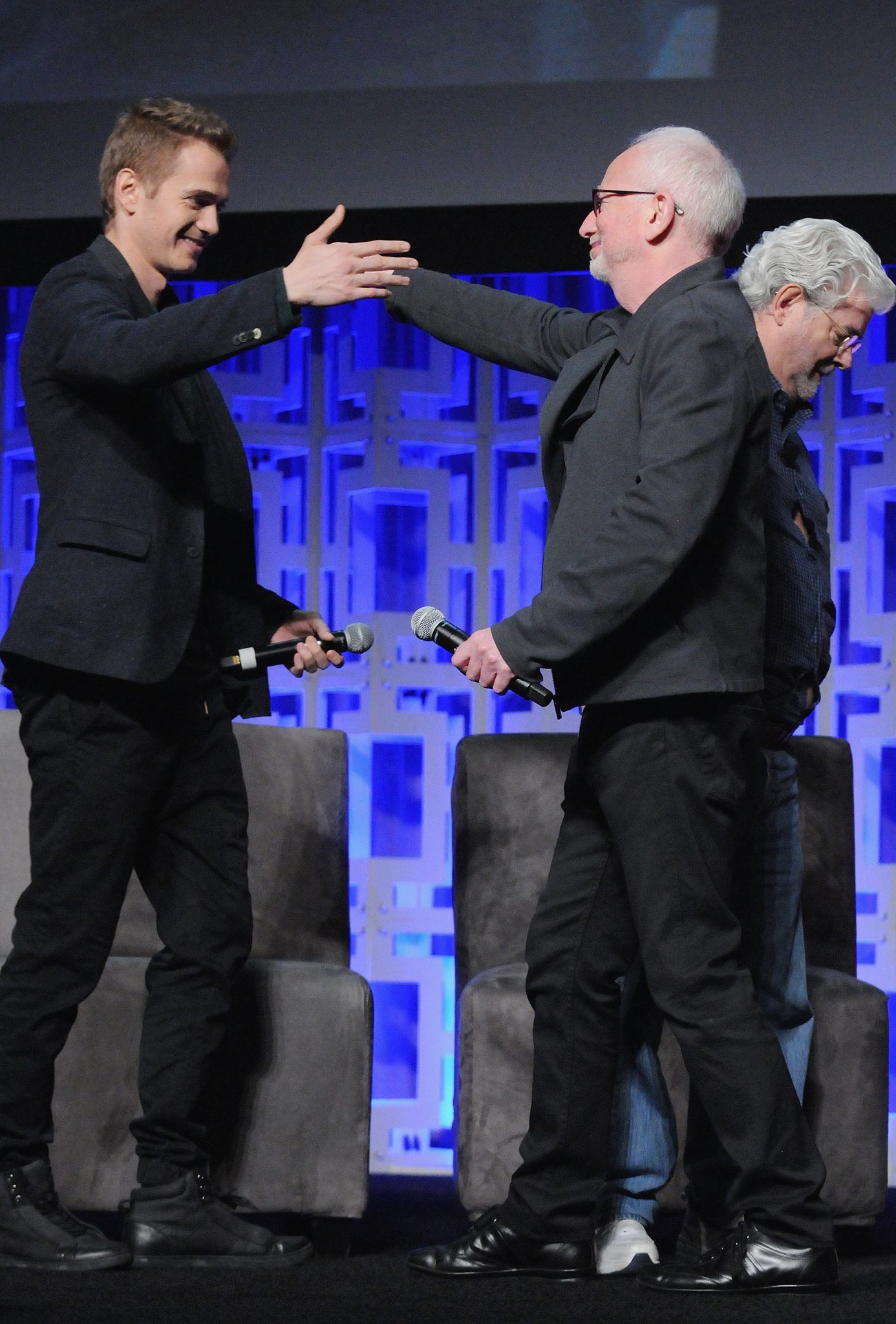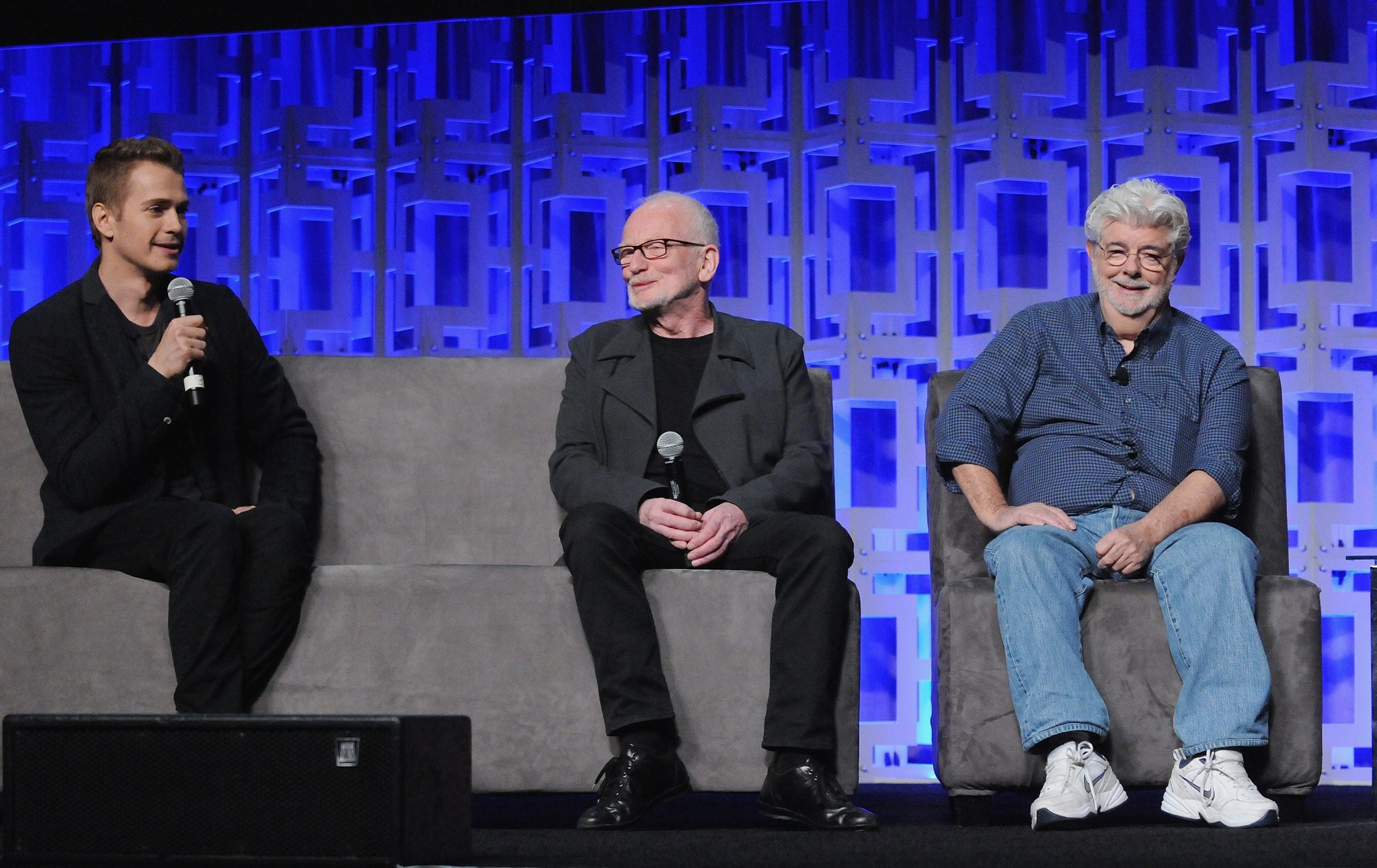 ORLANDO, FL – APRIL 13: Hayden Christensen, Ian McDiarmid and George Lucas attend the 40 YEARS OF STAR WARS PANEL during the 2017 STAR WARS CELEBRATION at Orange County Convention Center on April 13, 2017 in Orlando, Florida. (Photo by Gerardo Mora/Getty Images for Disney) *** Local Caption *** Hayden Christensen, Ian McDiarmid, George Lucas