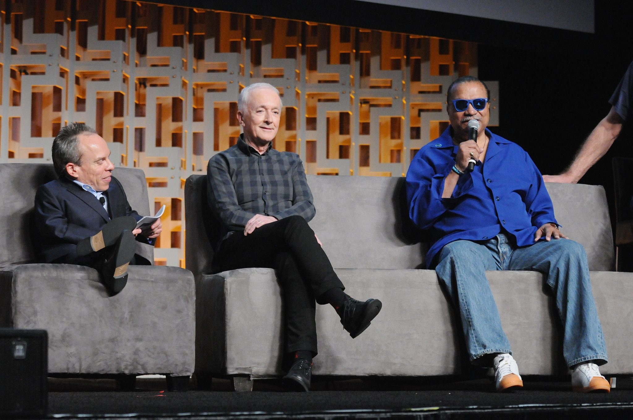 ORLANDO, FL – APRIL 13: Warwick Davis, Anthony Daniels and Billy Dee Williams attend the 40 YEARS OF STAR WARS PANEL during the 2017 STAR WARS CELEBRATION at Orange County Convention Center on April 13, 2017 in Orlando, Florida. (Photo by Gerardo Mora/Getty Images for Disney) *** Local Caption *** Warwick Davis, Anthony Daniels;Billy Dee Williams
