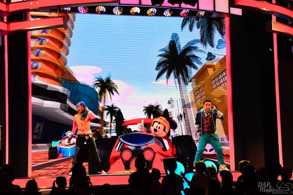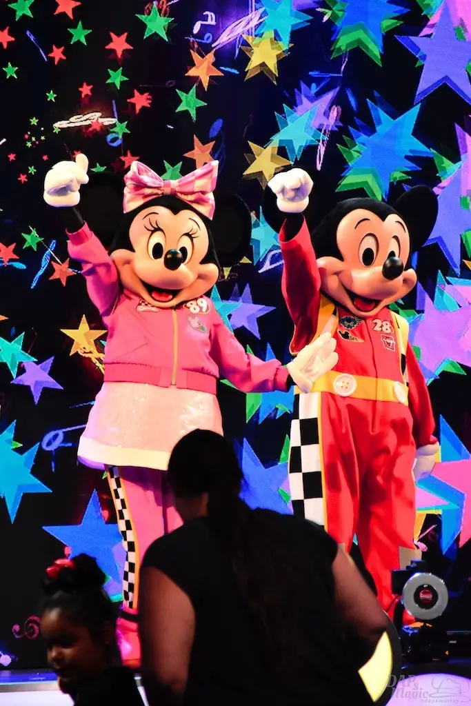 Once the party gets started, another DJ joins the show to help show off moves kids can do to the music. They both explain how they’re throwing a party and have guests coming. At some point, it’s realized that Mickey and friends didn’t get sent an invitation. Mickey and the Roadster Racers get invited via video, and decide to speed over to the party.