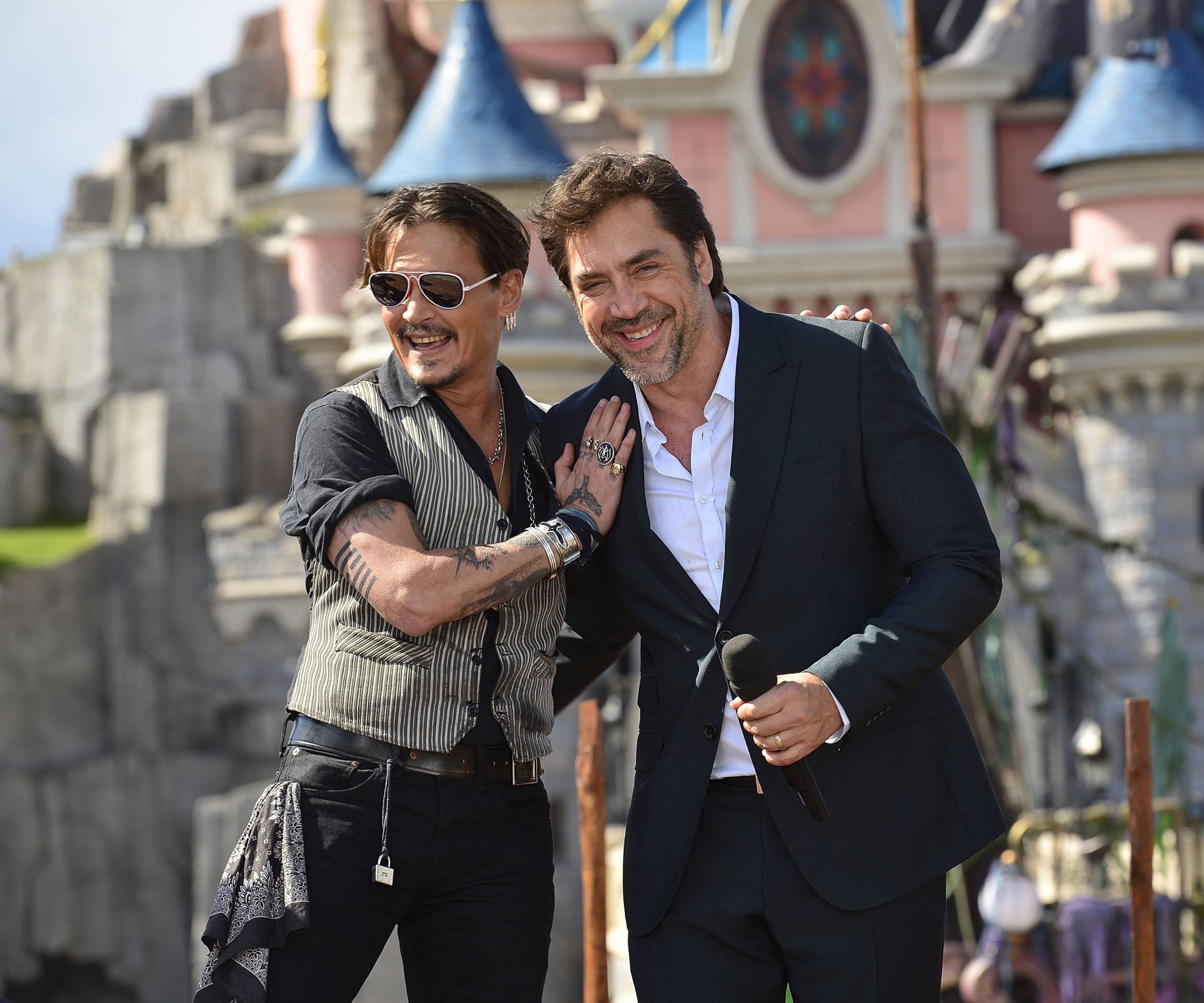 PARIS, FRANCE – MAY 14: Johnny Depp and Javier Bardem attend the European Premiere to celebrate the release of Disney’s ‘Pirates of the Caribbean: Salazar’s Revenge’ at Disneyland Paris on May 14, 2017 in Paris, France. *** Local Caption *** Johnny Depp; Javier Bardem