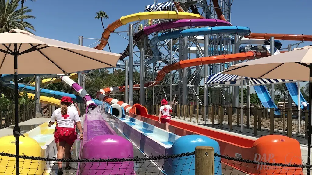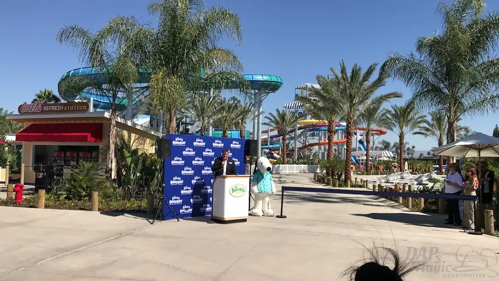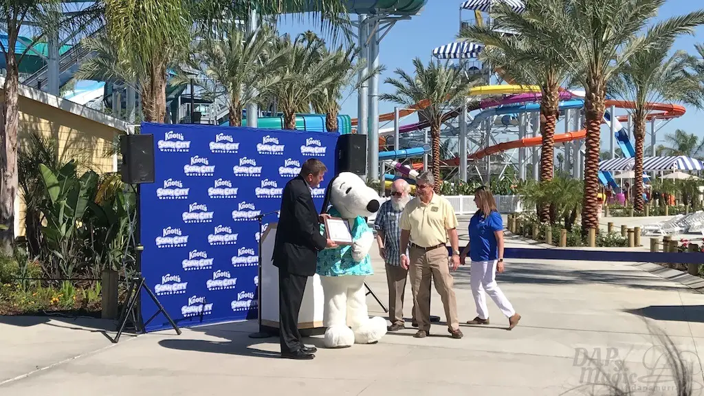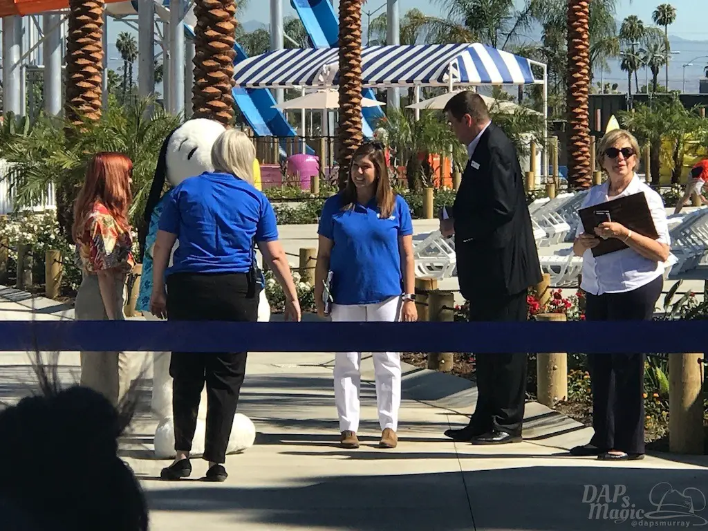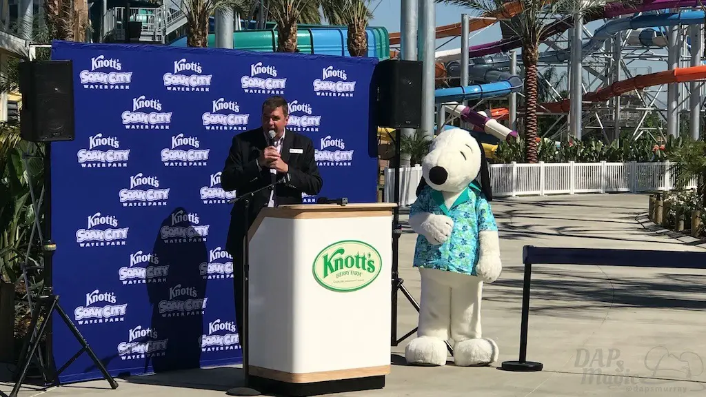 Knott’s Soak City has reopened for the summer city, and with 7 new slides! May 20 was the grand opening, and season opening, for The Wedge and Shore Break. Jon Storbeck, Buena Park Mayor Beth Swift, and Snoopy cut the ribbon to inaugurate the new slides.