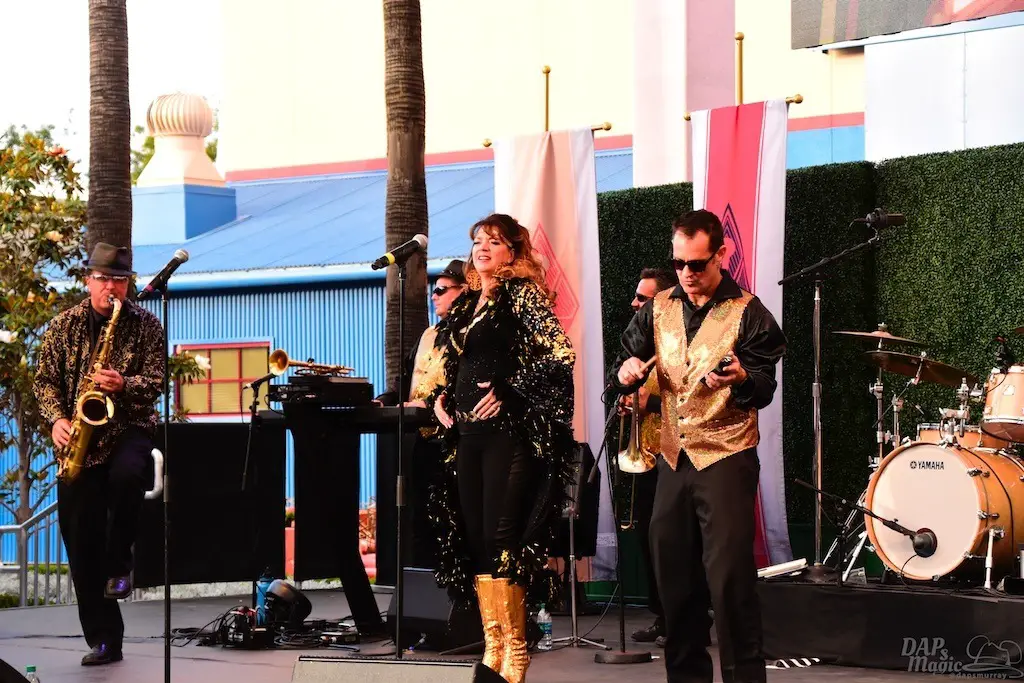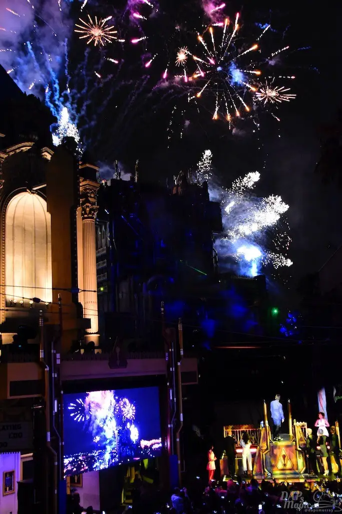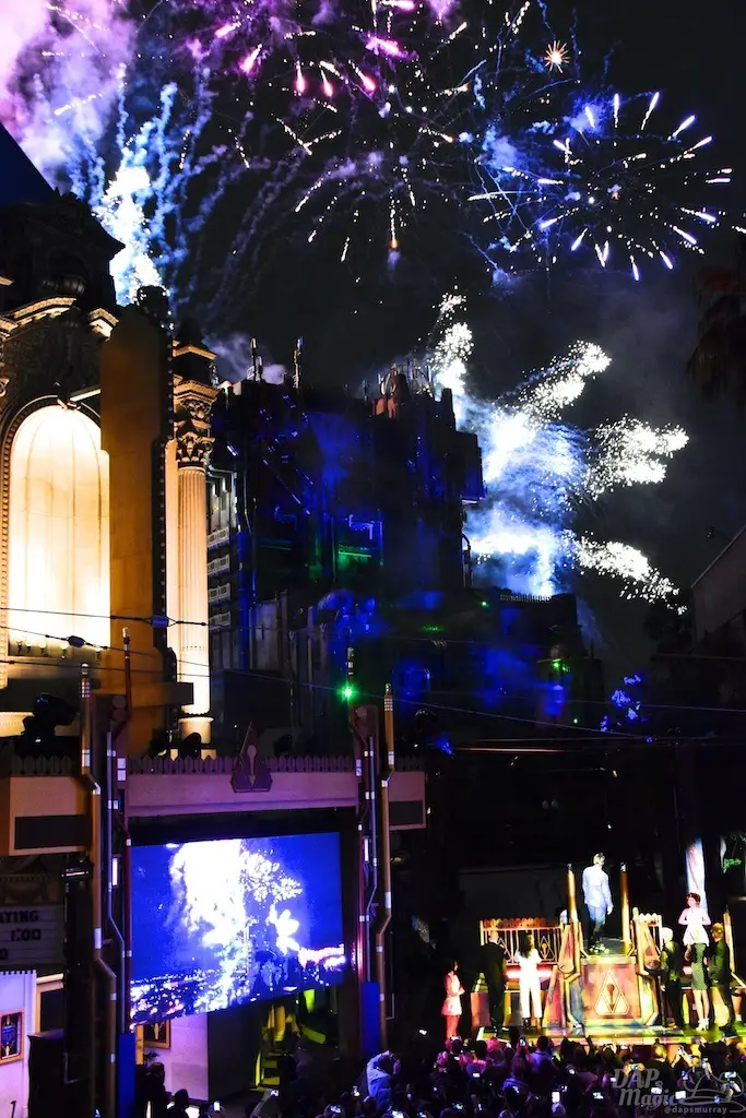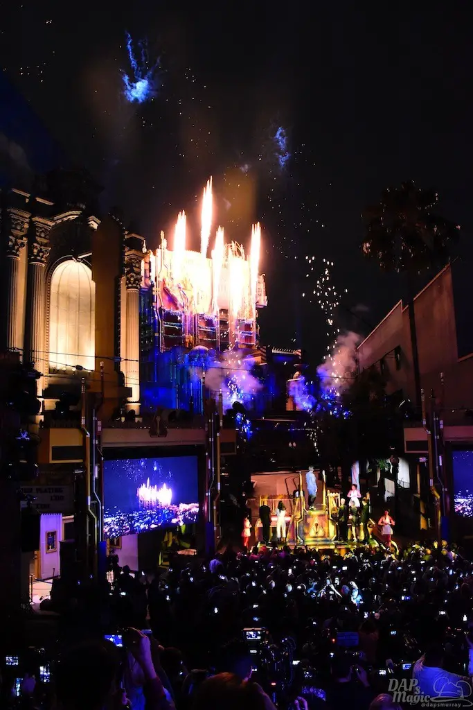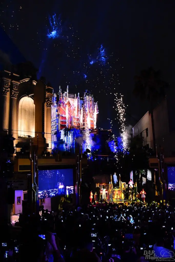 After riding the ride a couple of times, and seeing Avengers Training Initiative and Disney Jr. Dance Party, the party began. The gala was all along the main road of Hollywood Land, and also the backlot area of the land. A black carpet led the way to a lit up video walkway.
