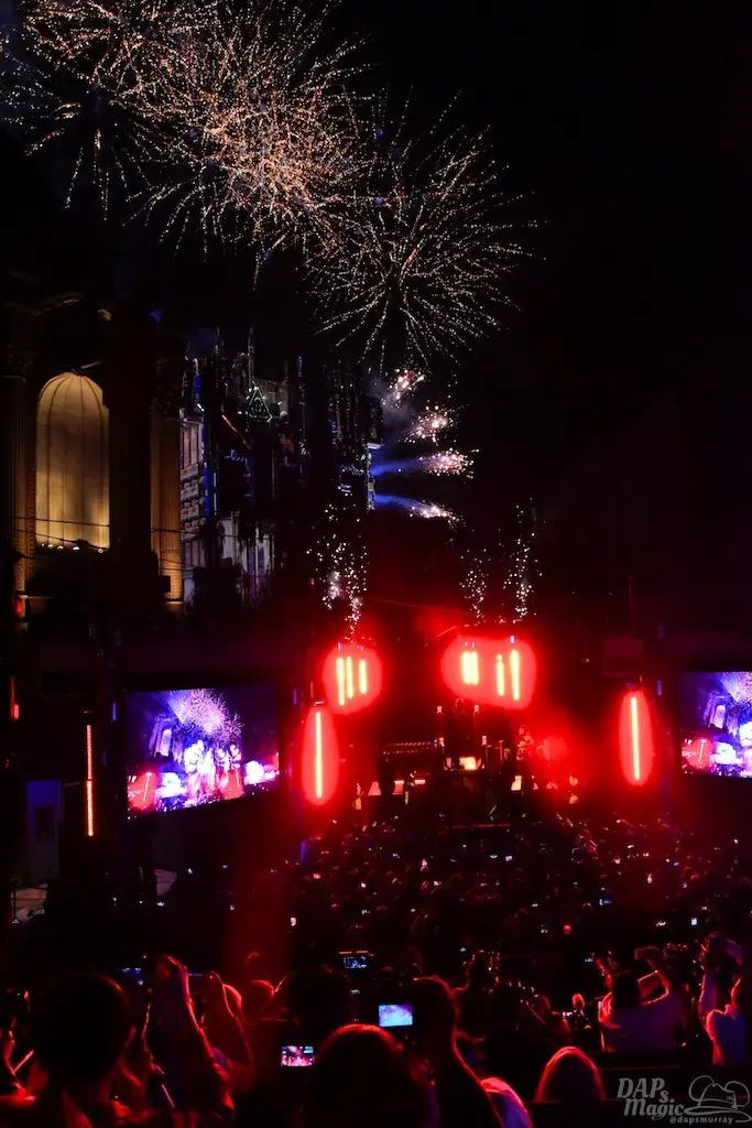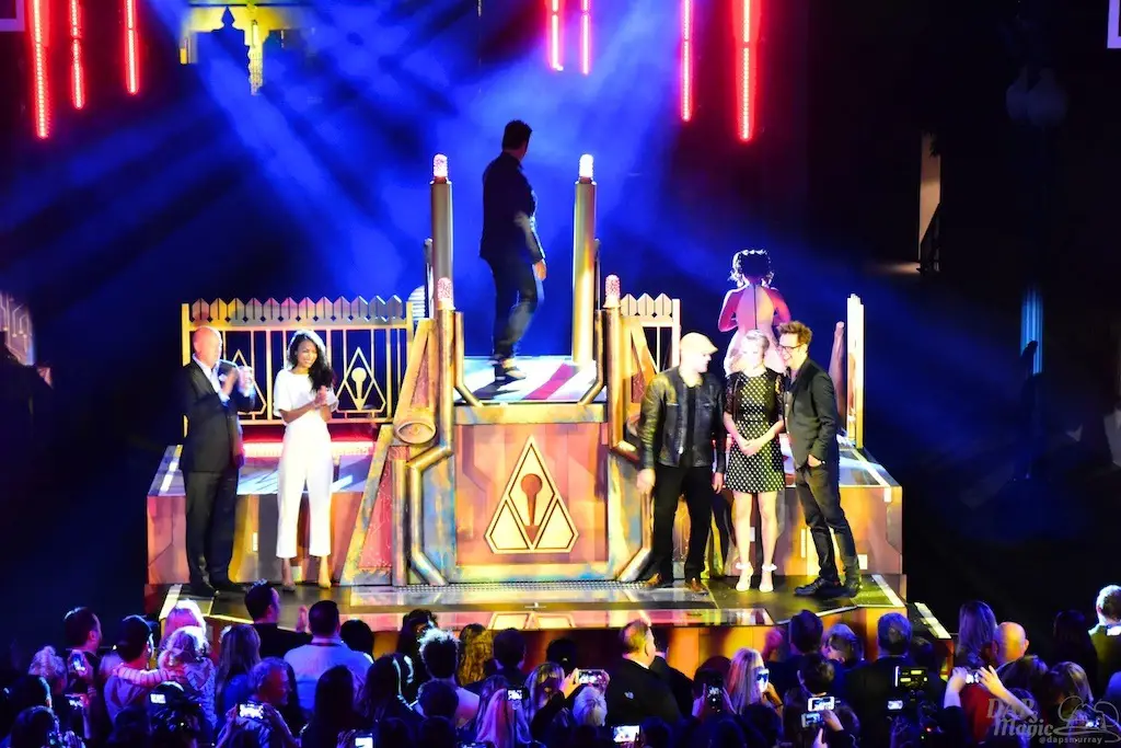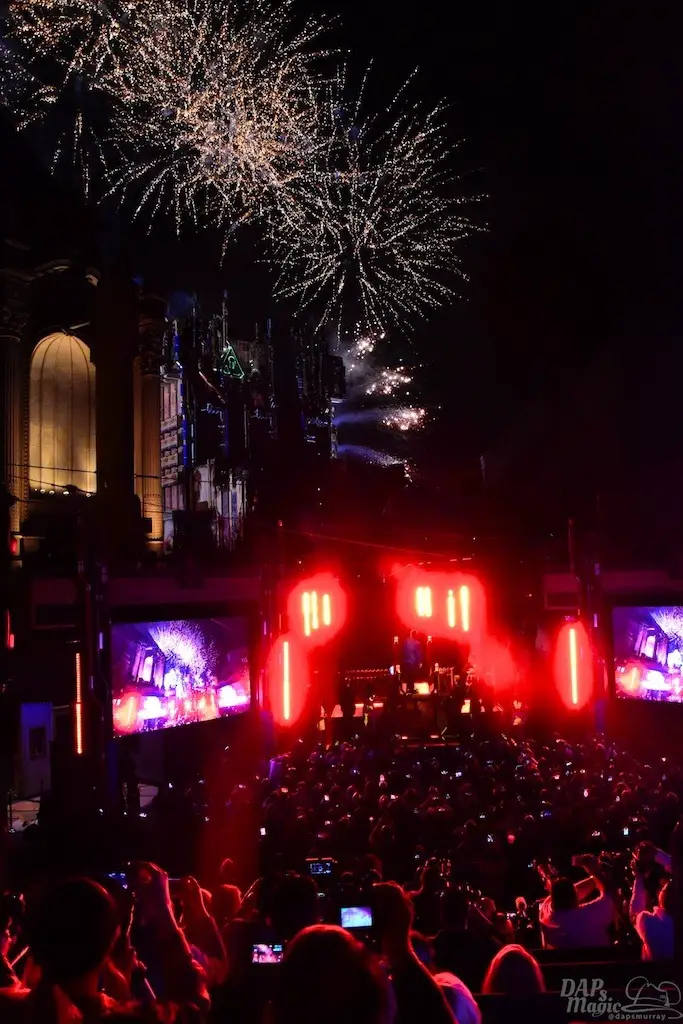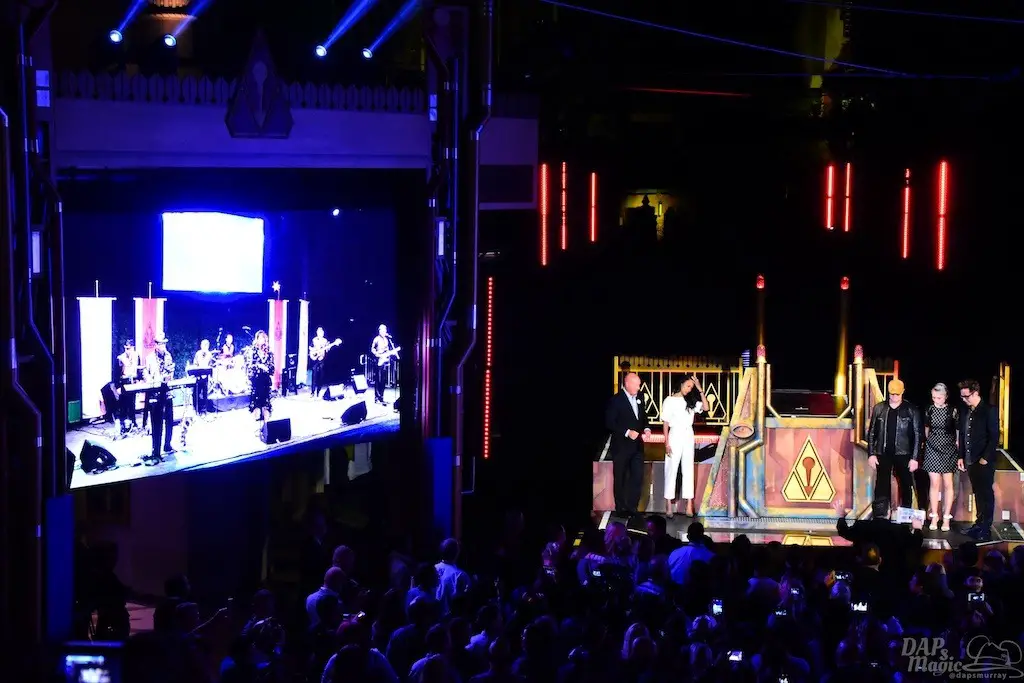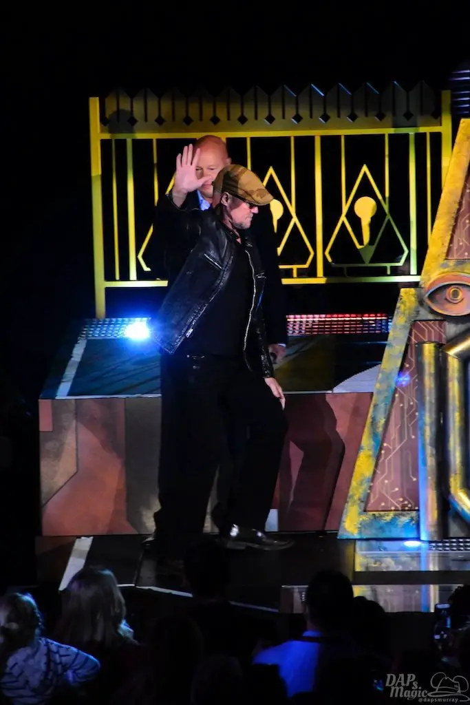 Gunn introduced a few cast members of the films including Zoe Saldana, Pom Klementieff, Michael Rooker, and Benicio Del Toro. Del Toro initiated the actual opening of the attraction. Fireworks and lightning projections concluded the ceremony and opened the attraction.